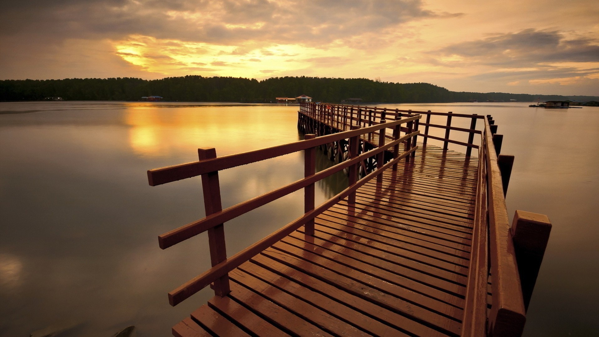 Tramonto sul molo. l'oceano infinito è bellissimo