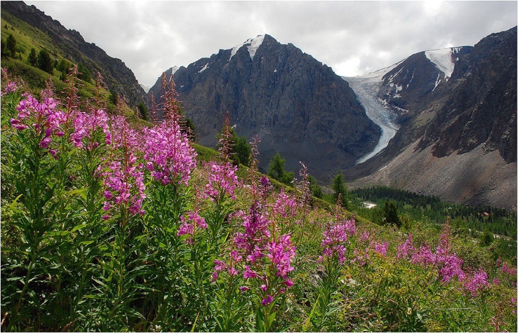 Bellissimo pendio di montagna in fiori