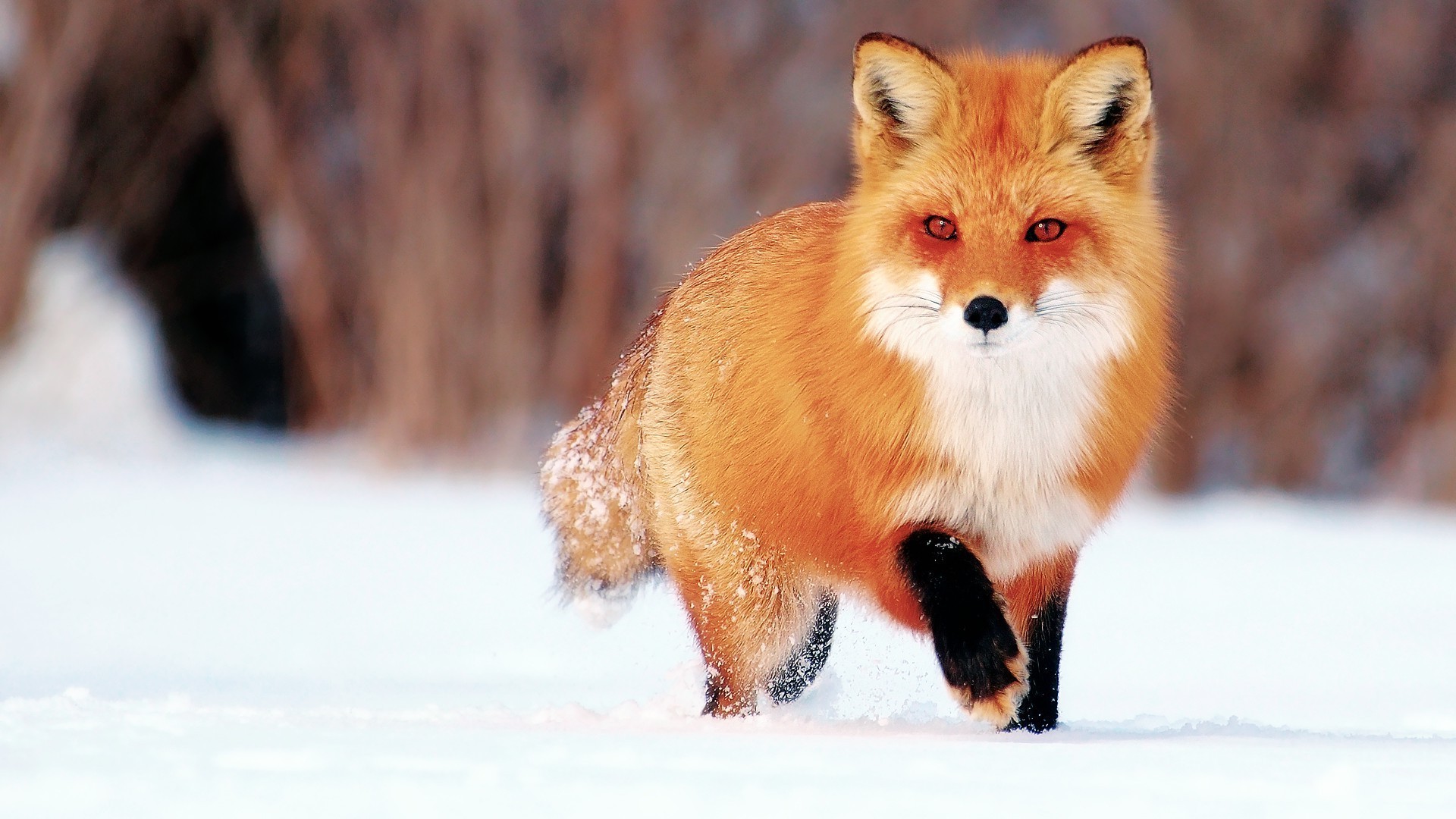 Un imbroglione dai capelli Rossi corre sulla neve bianca