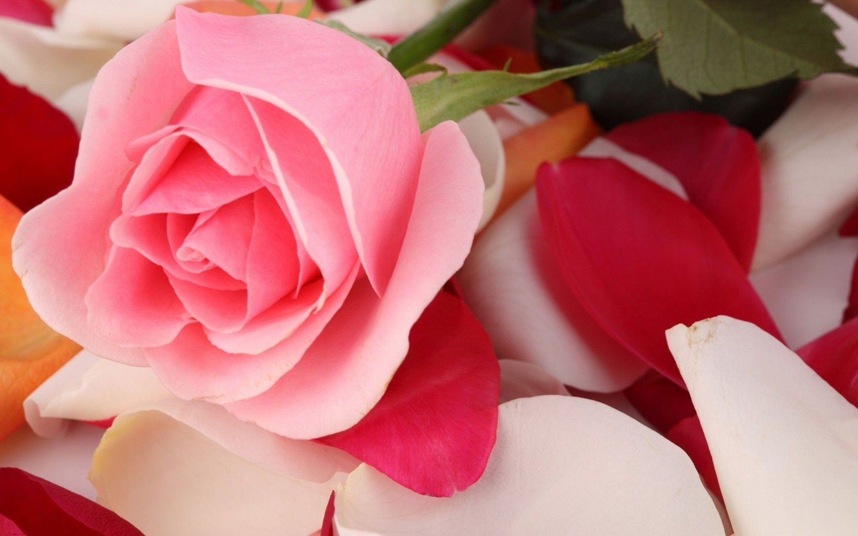 Rosa rosa in petali di rosa