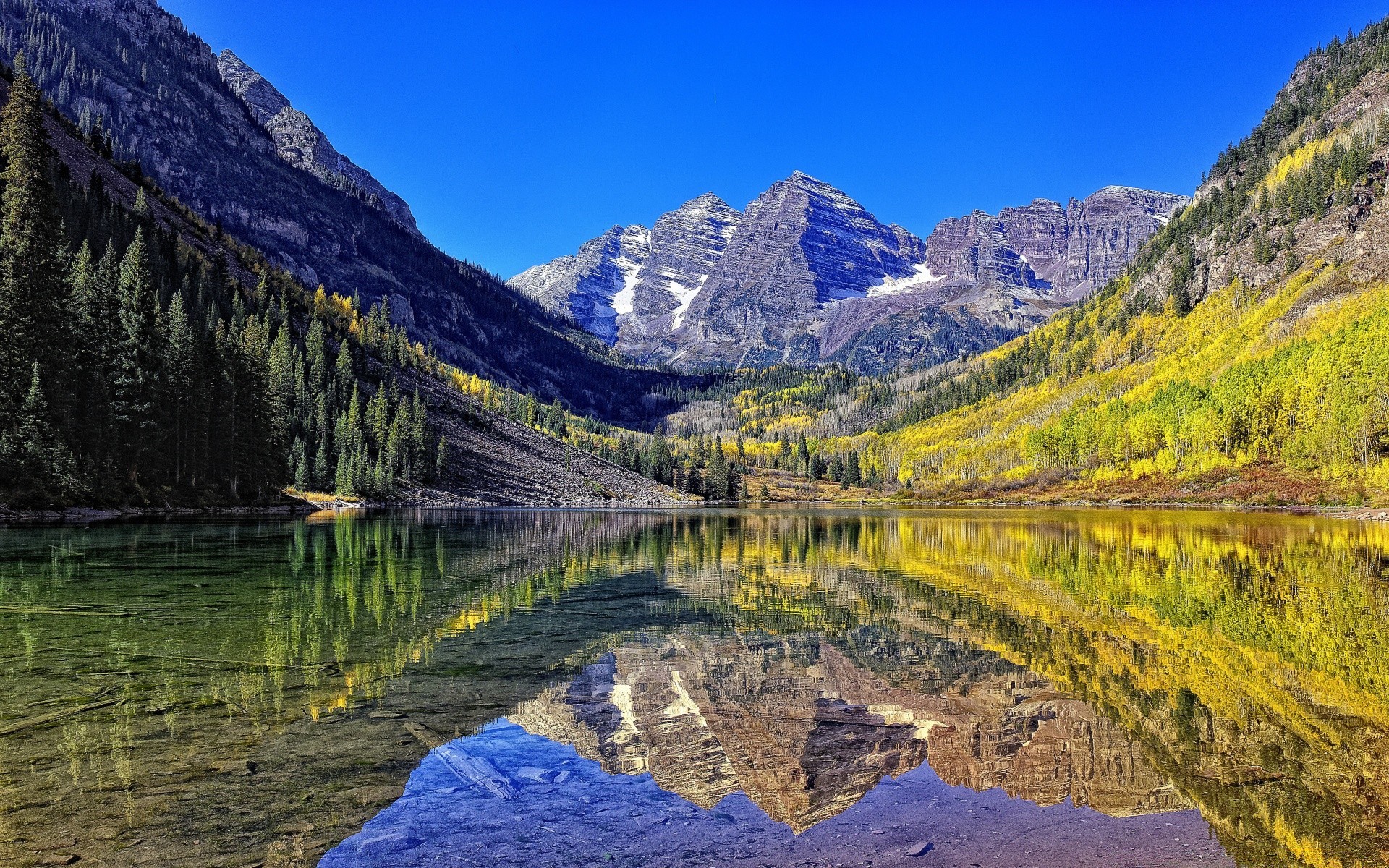 Riflesso delle rocce di montagna nel lago