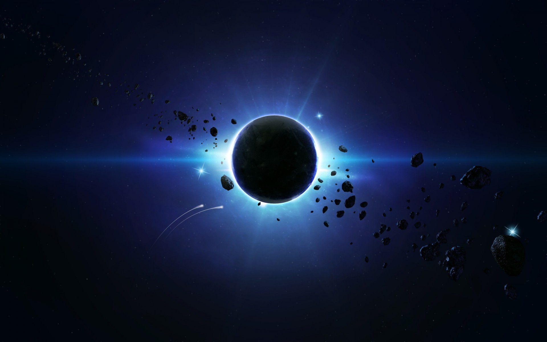 L'uomo guarda in piedi sul ghiaccio e guarda l'enorme pianeta