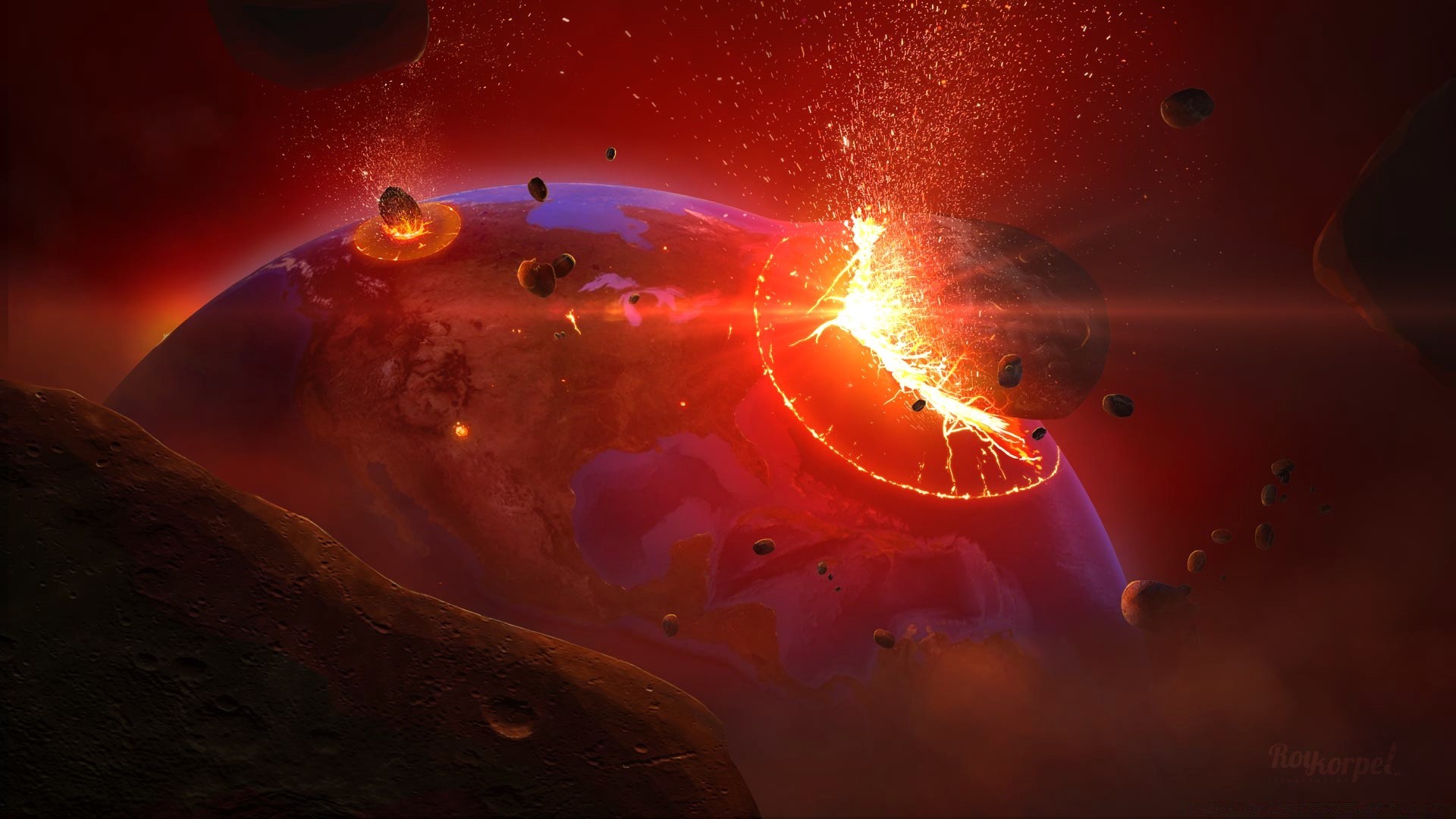 Illustrazione artistica di pianeti e meteoriti che si librano nello spazio