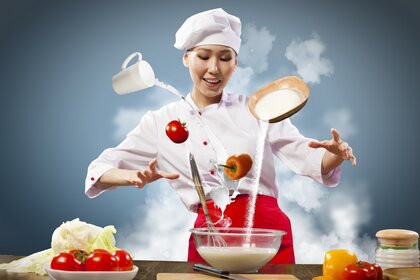 Il cuoco prepara un piatto di verdure