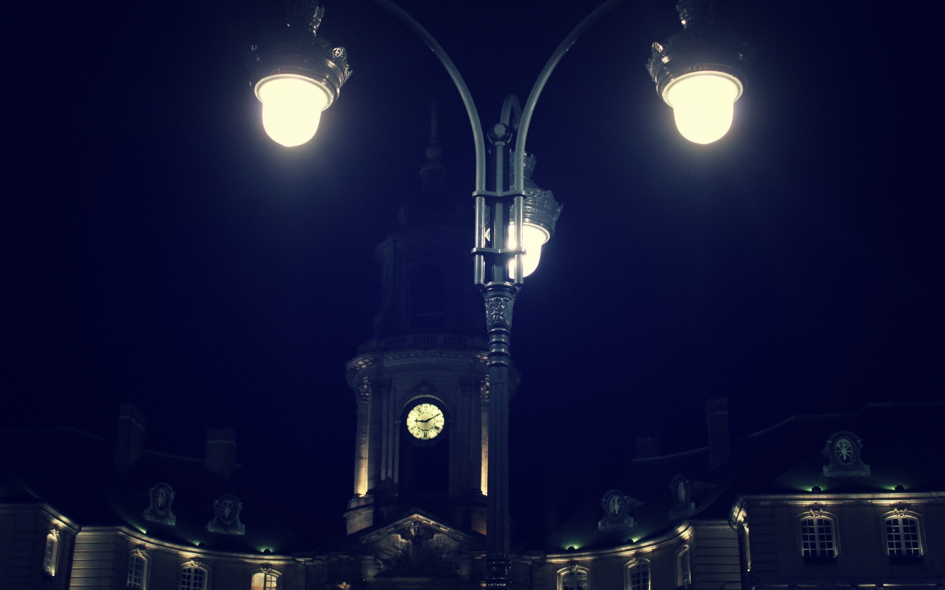 Primo piano di lanterne e un edificio in lontananza