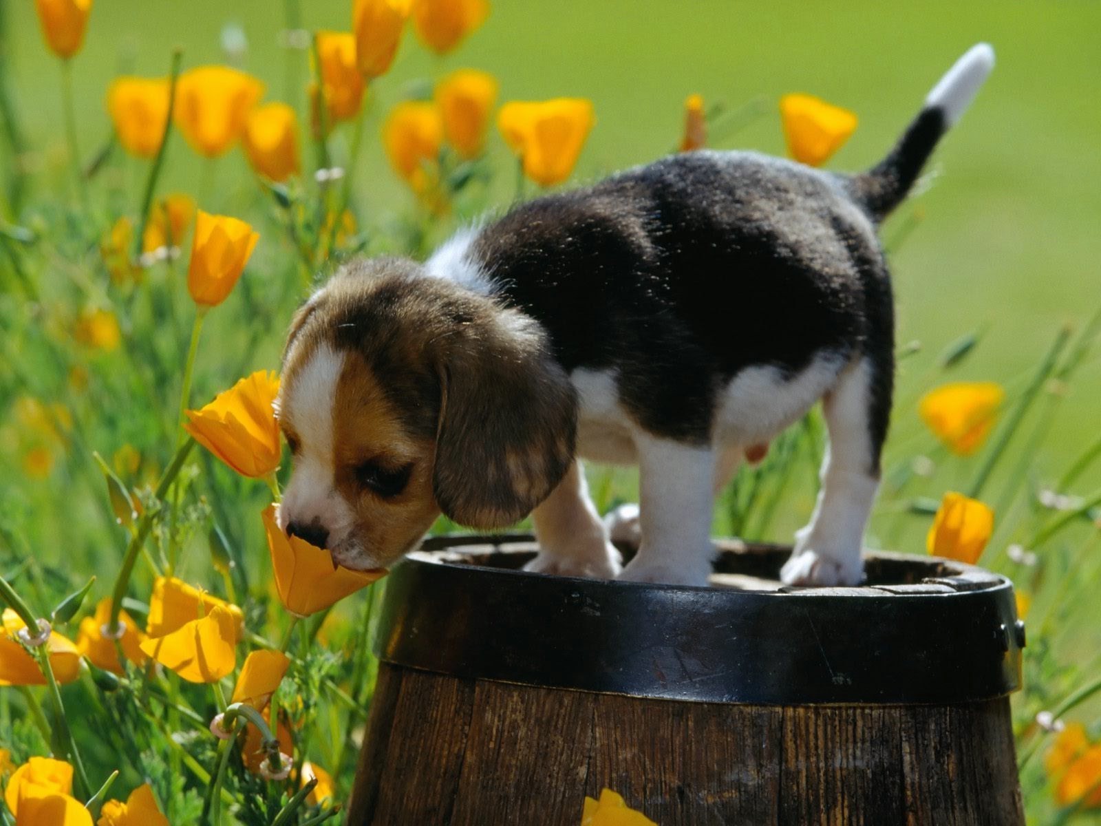 Carino cucciolo ama i fiori