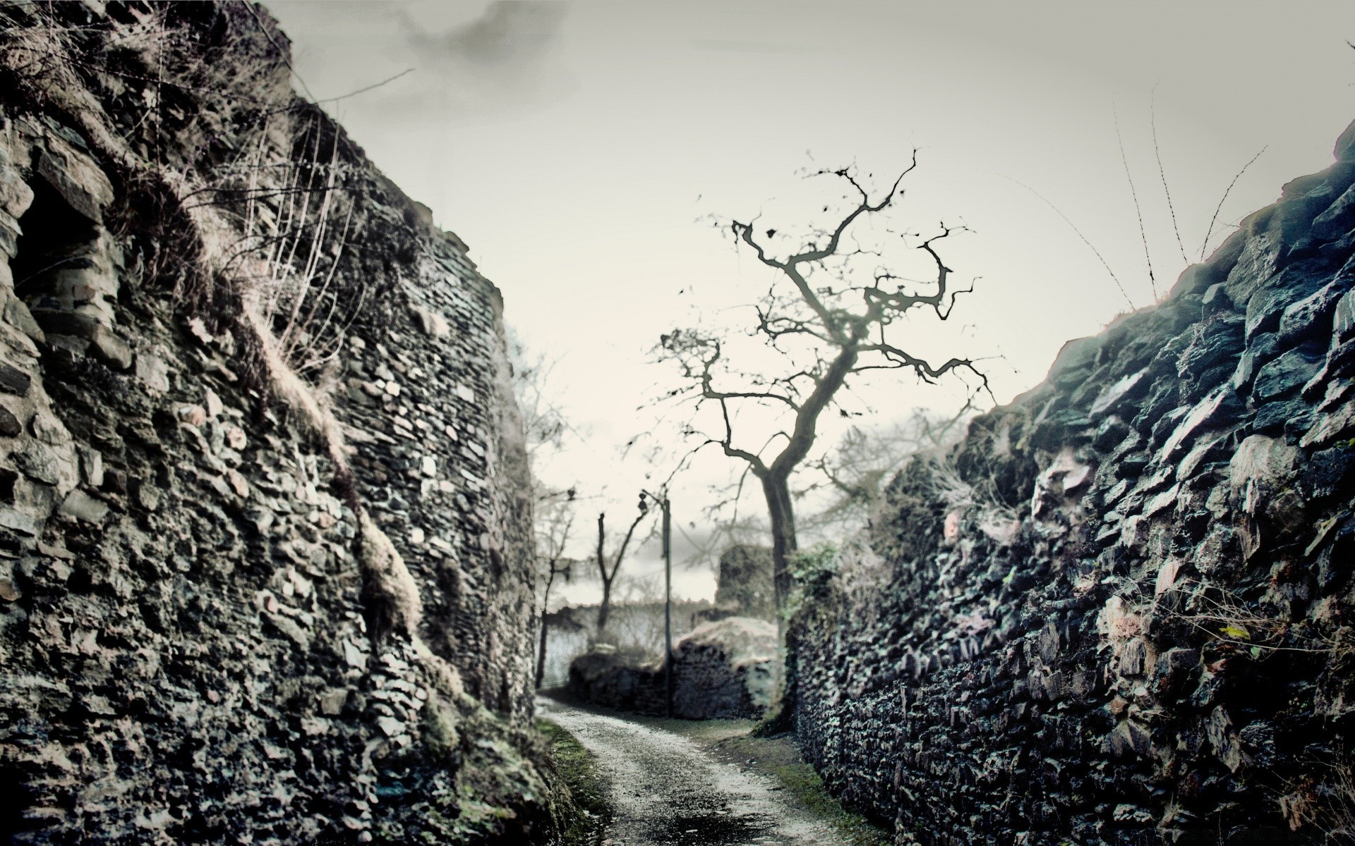 Viaggiatore a cavallo. architettura antica. arco distrutto