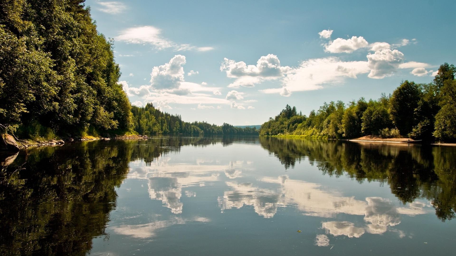 Vista dello stagno con le rive verdi
