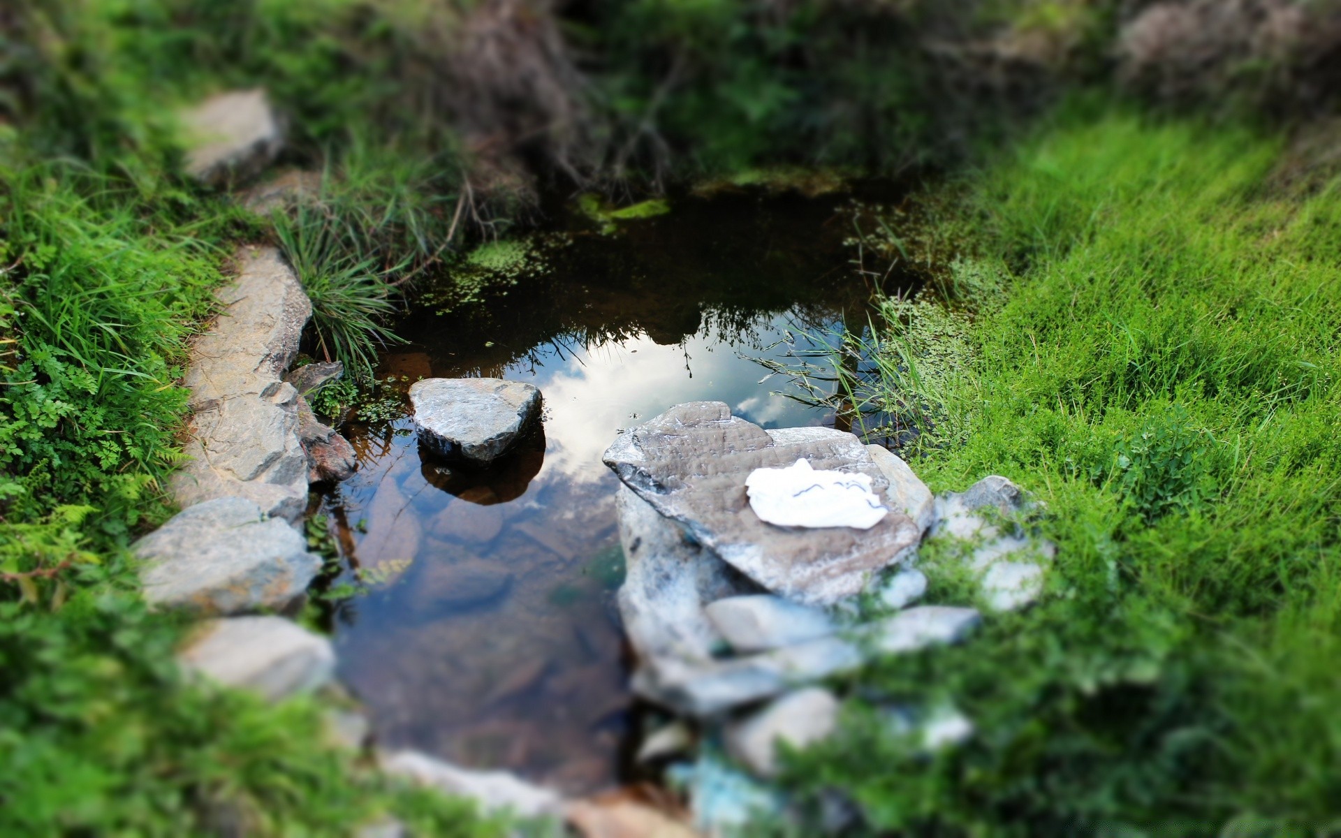 Piccolo stagno con pietre sul fondo