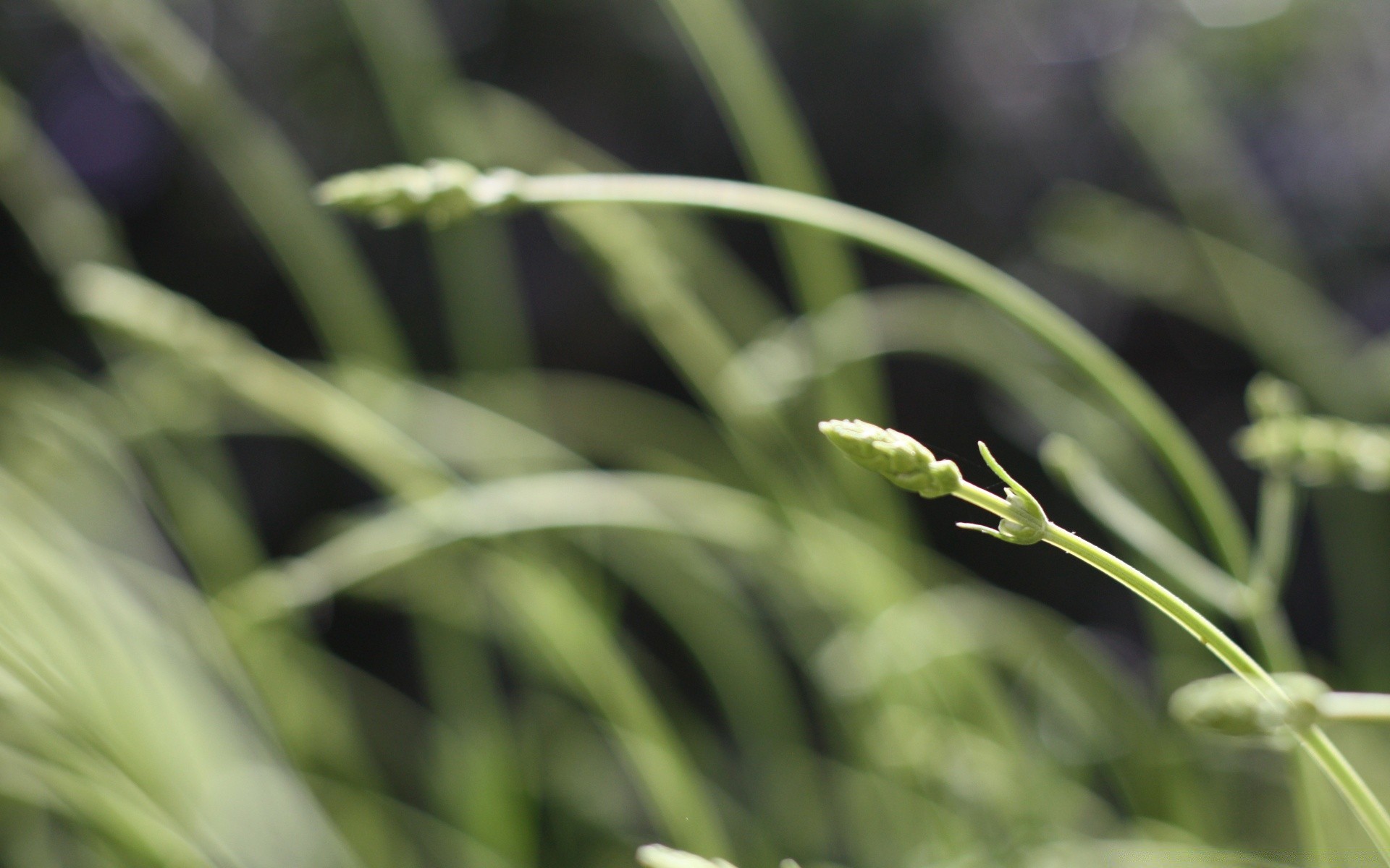 Due foglie verdi su un ramoscello su uno sfondo sfocato verde