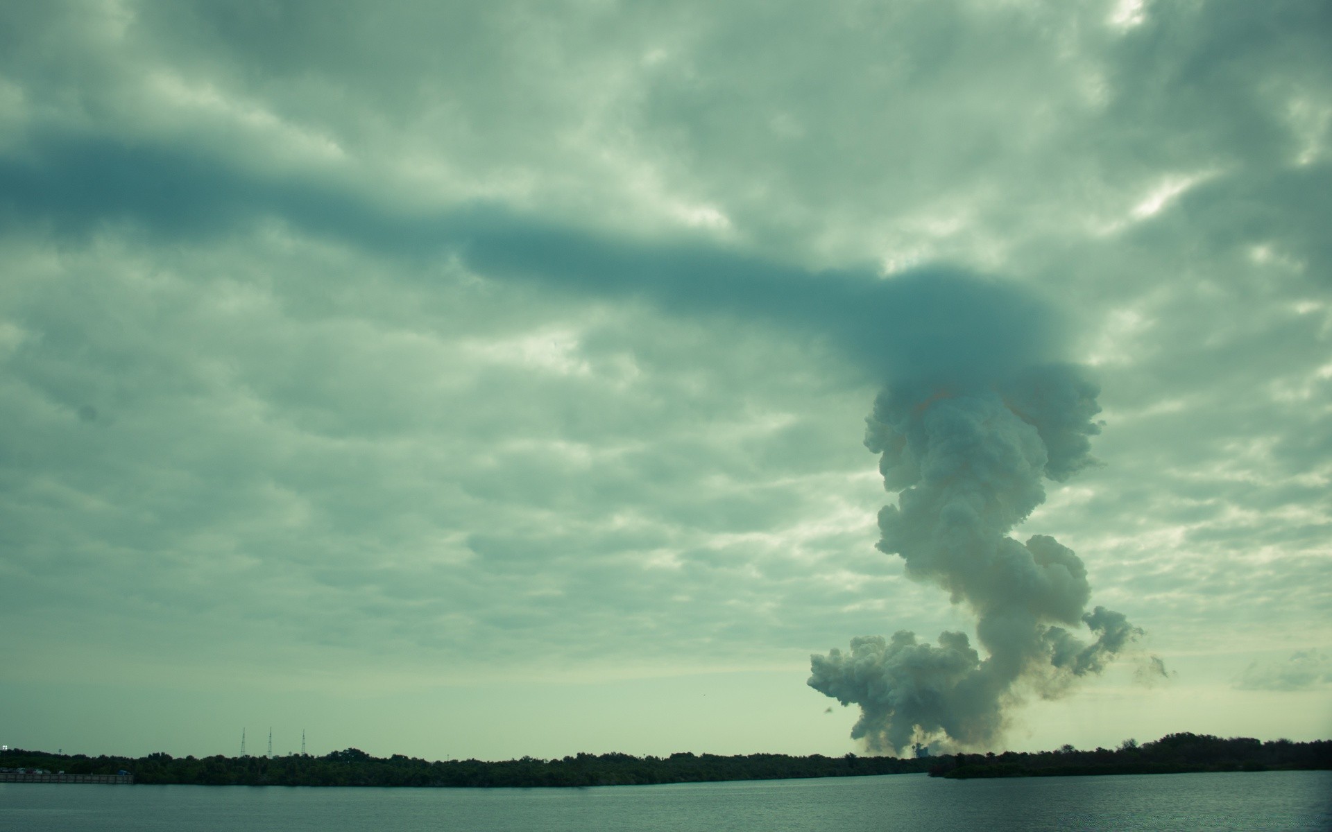 Il fumo all'orizzonte si collega alle nuvole