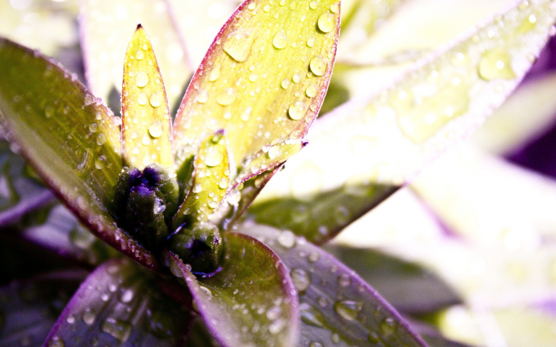 Foglie di piante al sole con rugiada