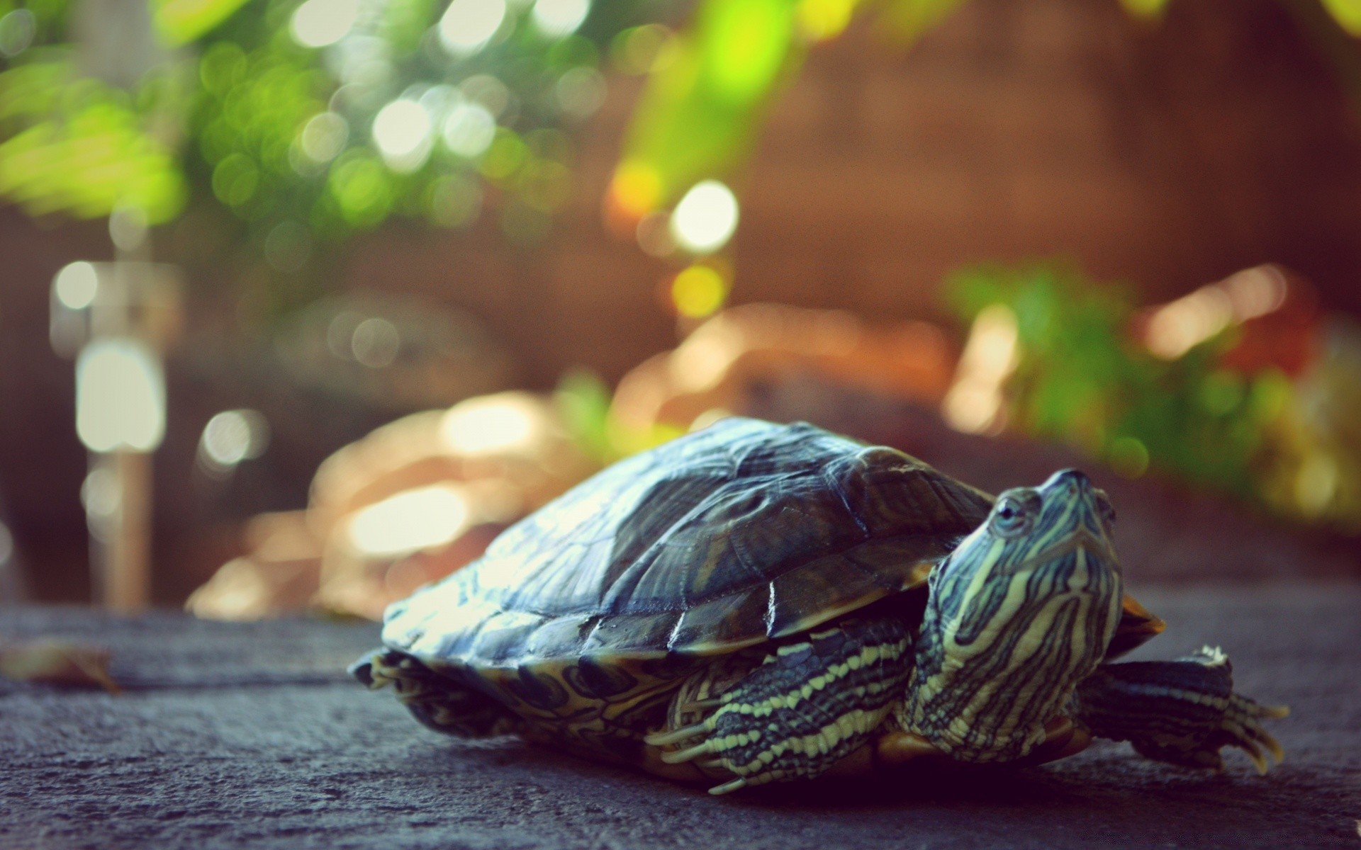 Tartaruga shell sfondo sfocato verde
