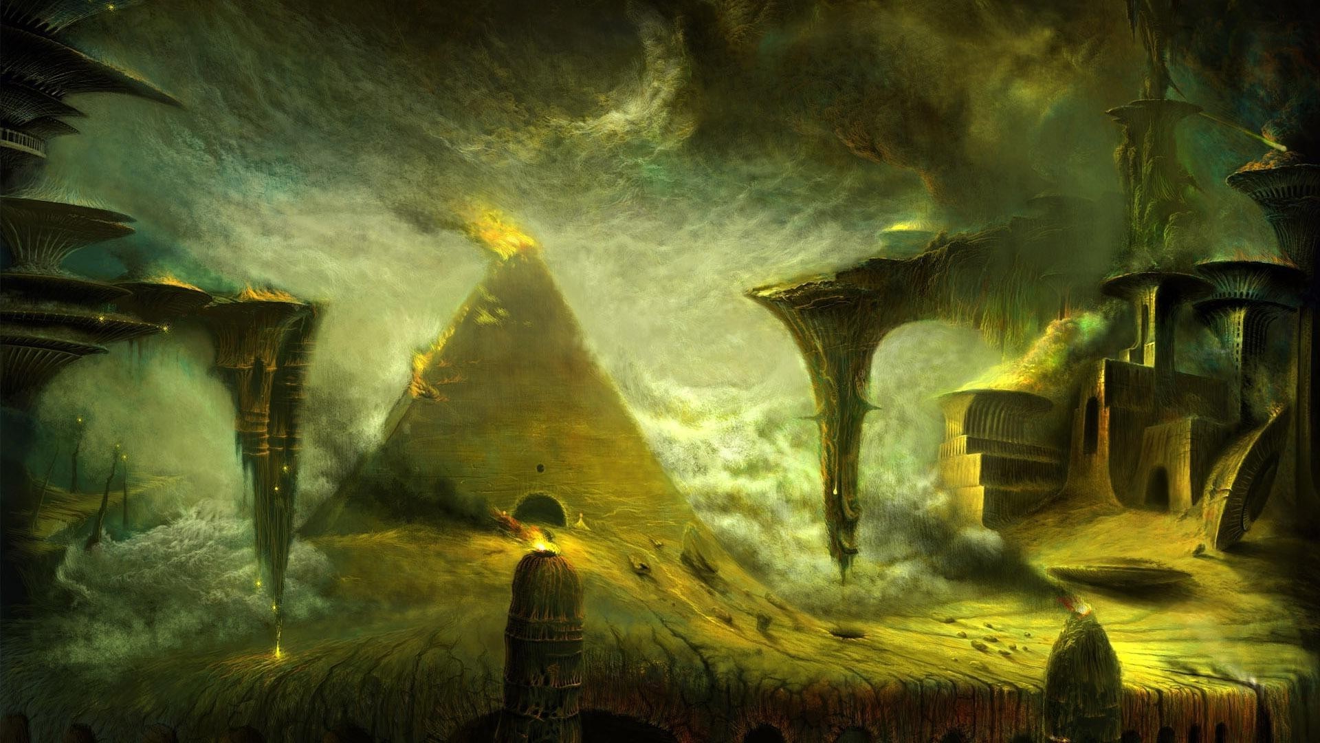 Antico tempio nella tempesta di sabbia