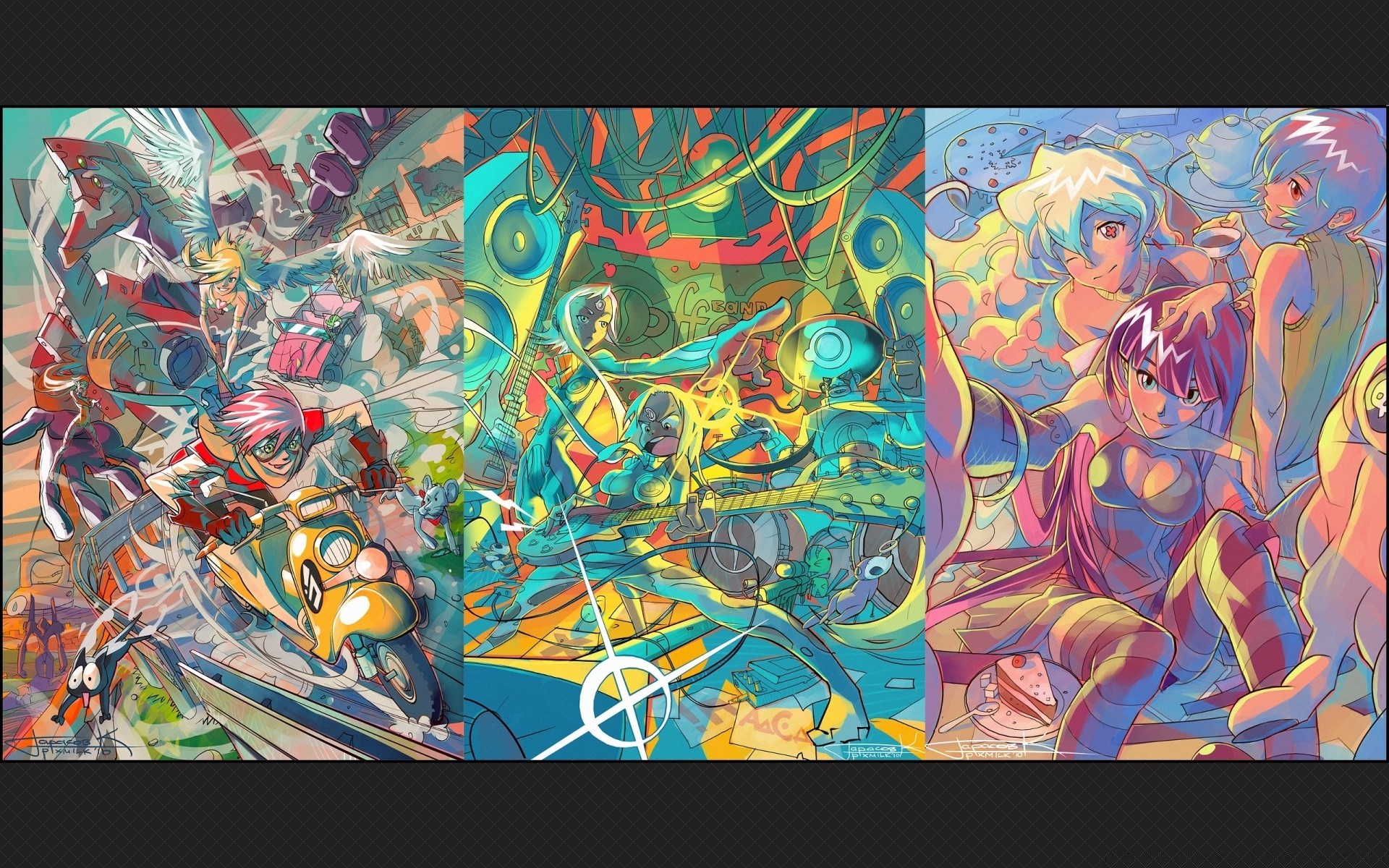 Anime tre illustrazioni insieme