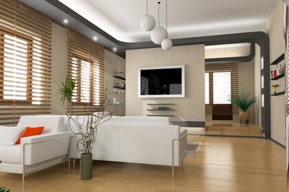 Interni moderni del soggiorno in tonalità bianche