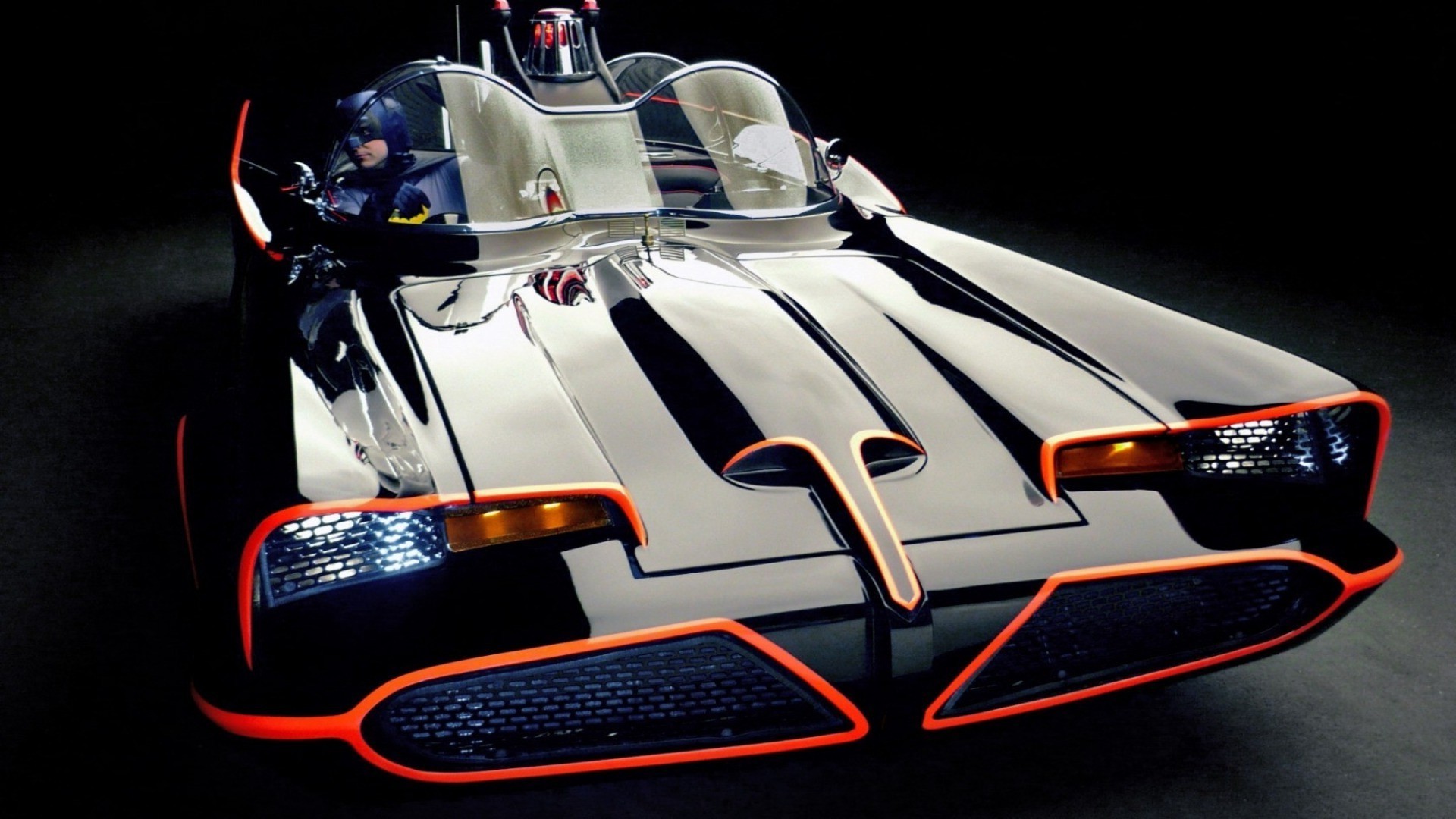 Potente auto sportiva con fari arancioni su sfondo scuro