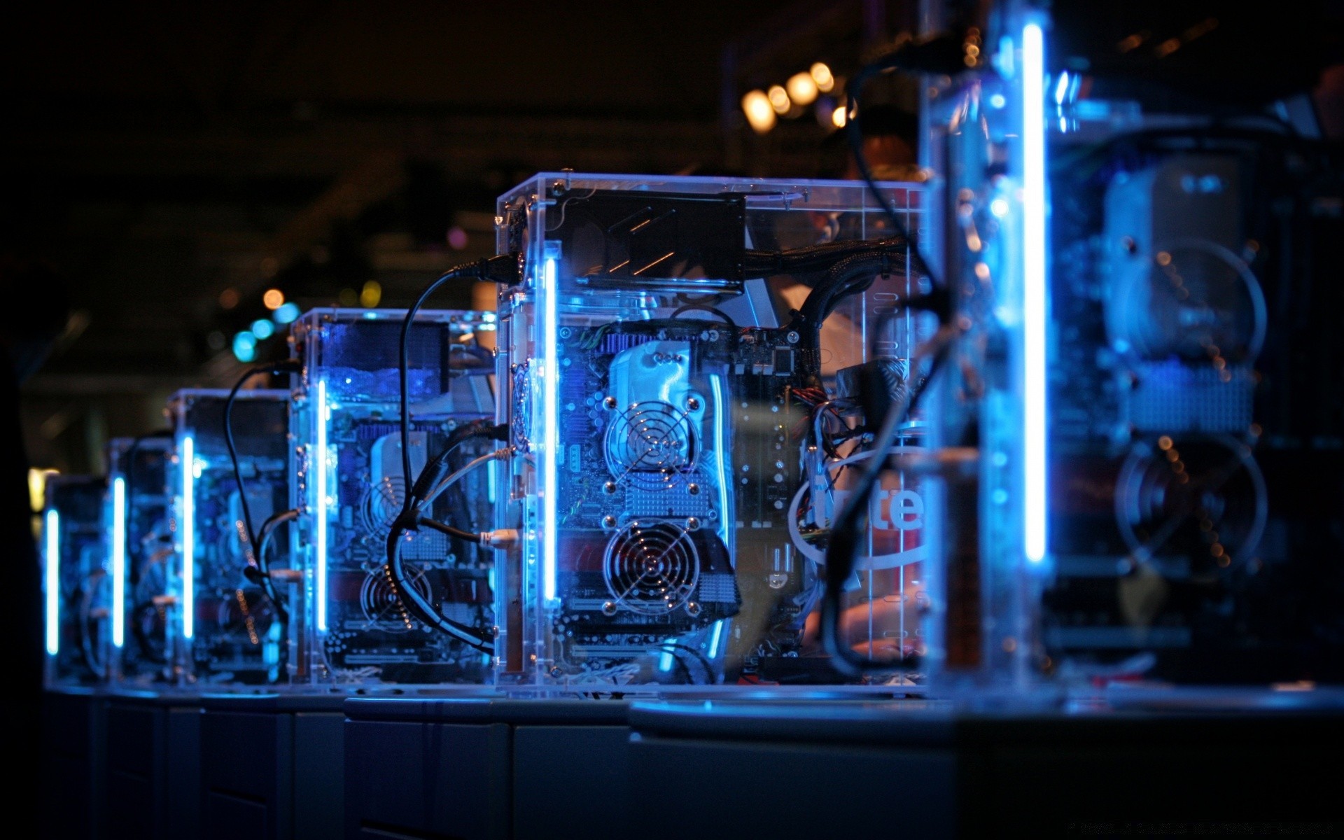 Apparecchiature informatiche illuminate con luce bluApparecchiature informatiche illuminate con luce blu