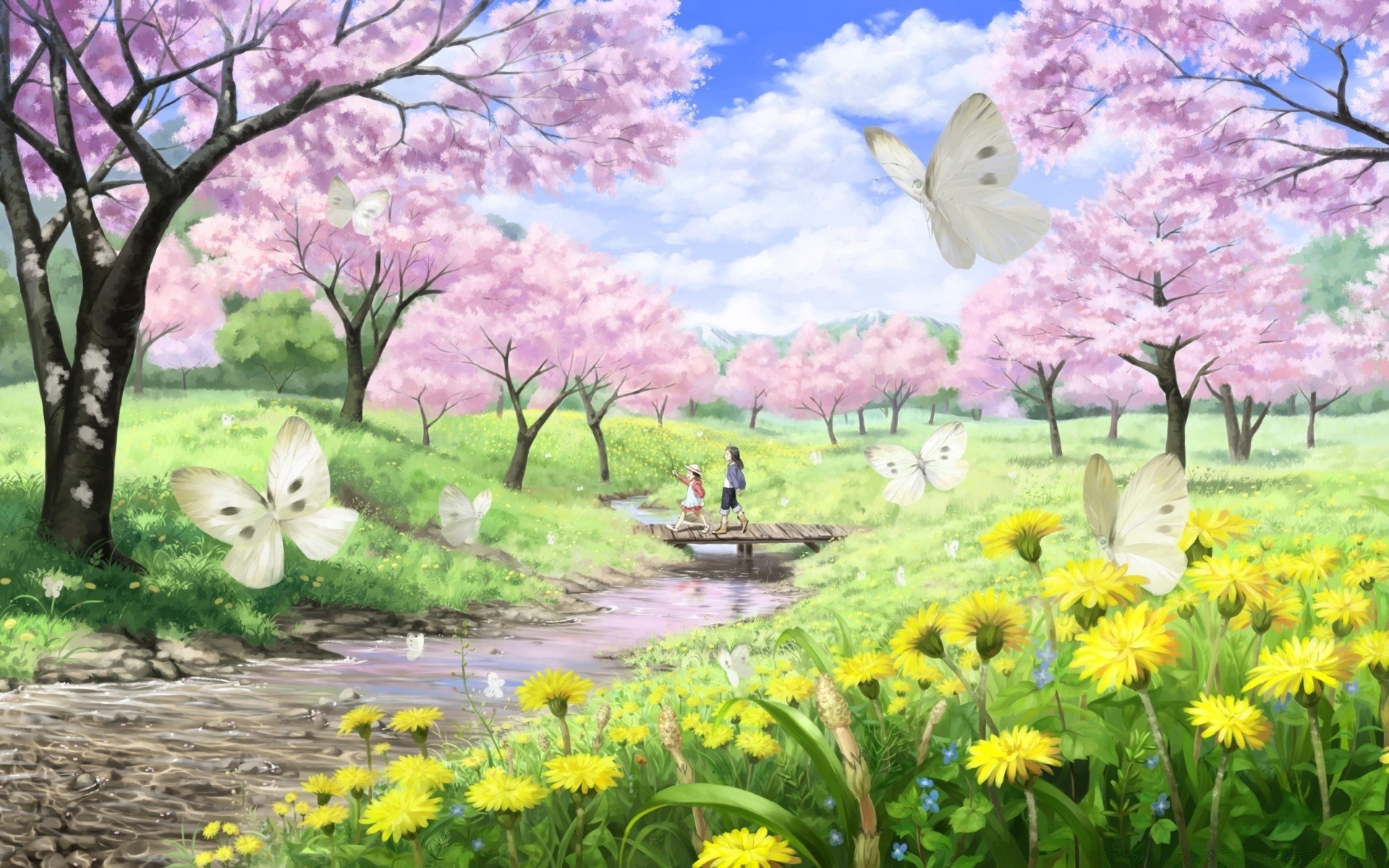 Fiori di ciliegio su uno sfondo di cielo primaverile