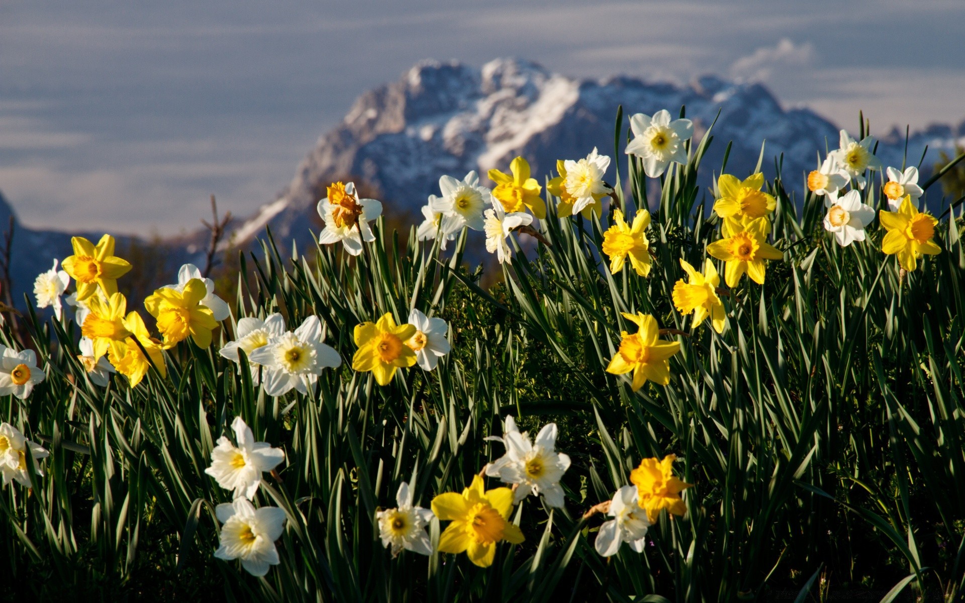 I narcisi primaverili fioriscono in montagna