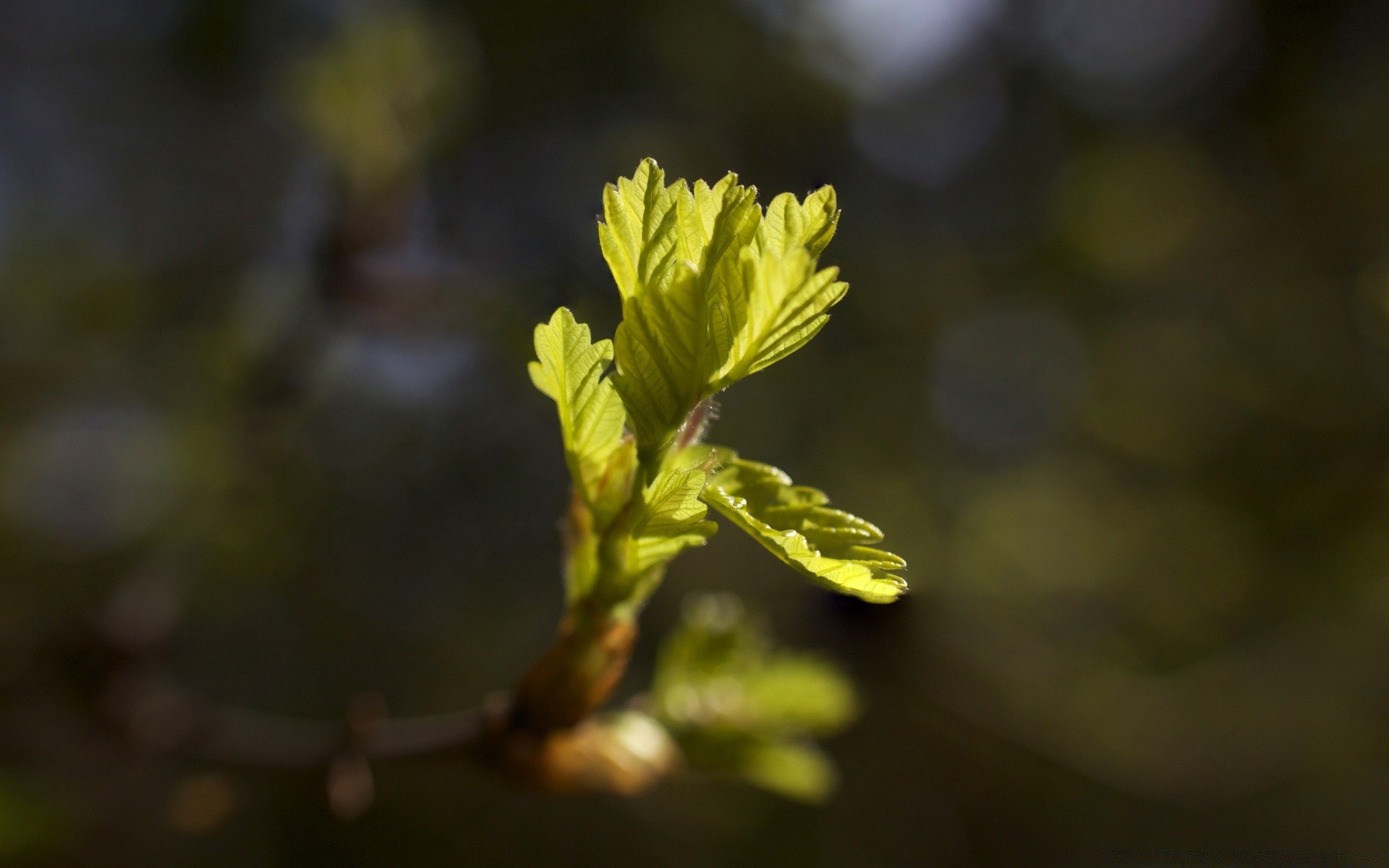 Ramoscello verde con foglie su sfondo sfocato