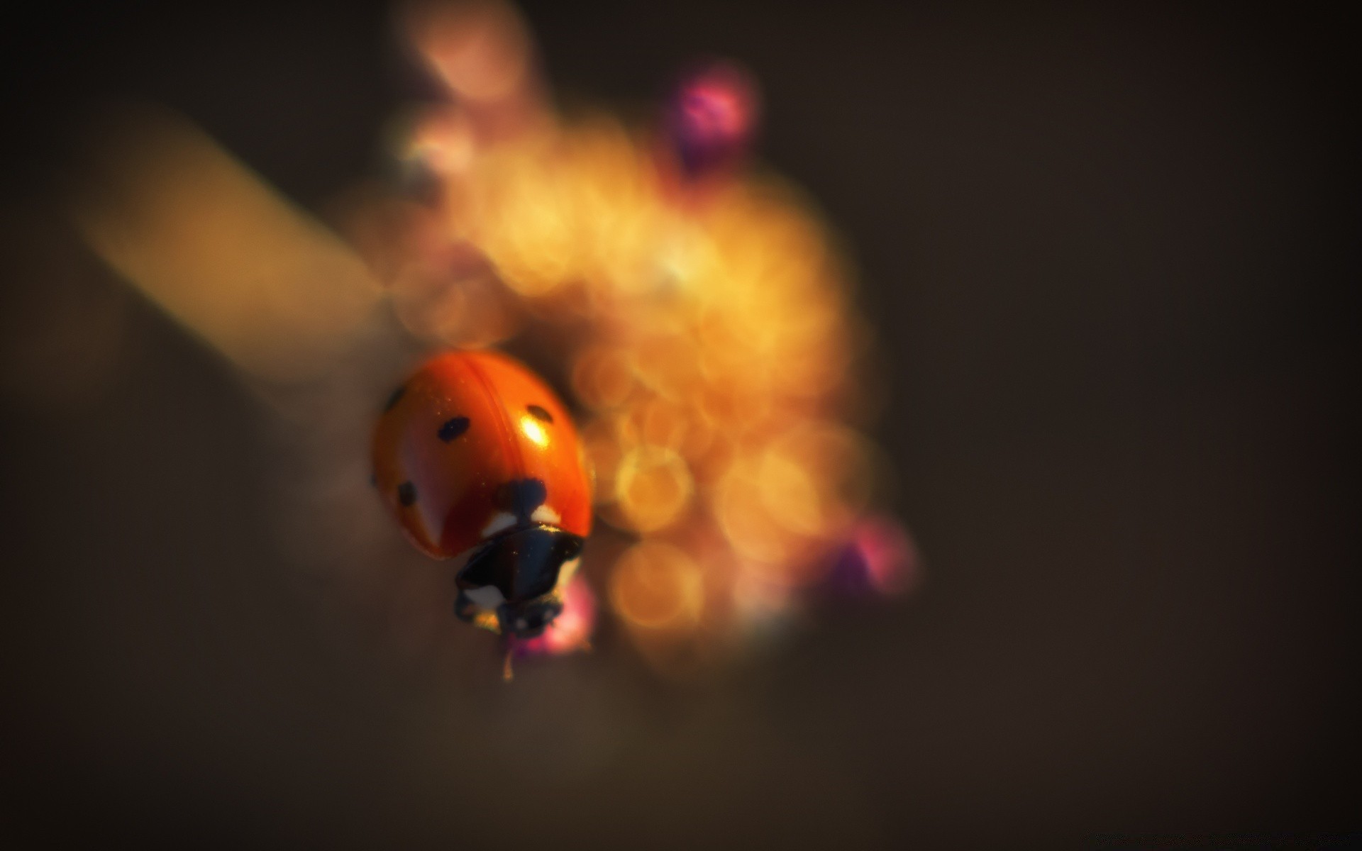 Coccinella primo piano su sfondo sfocato