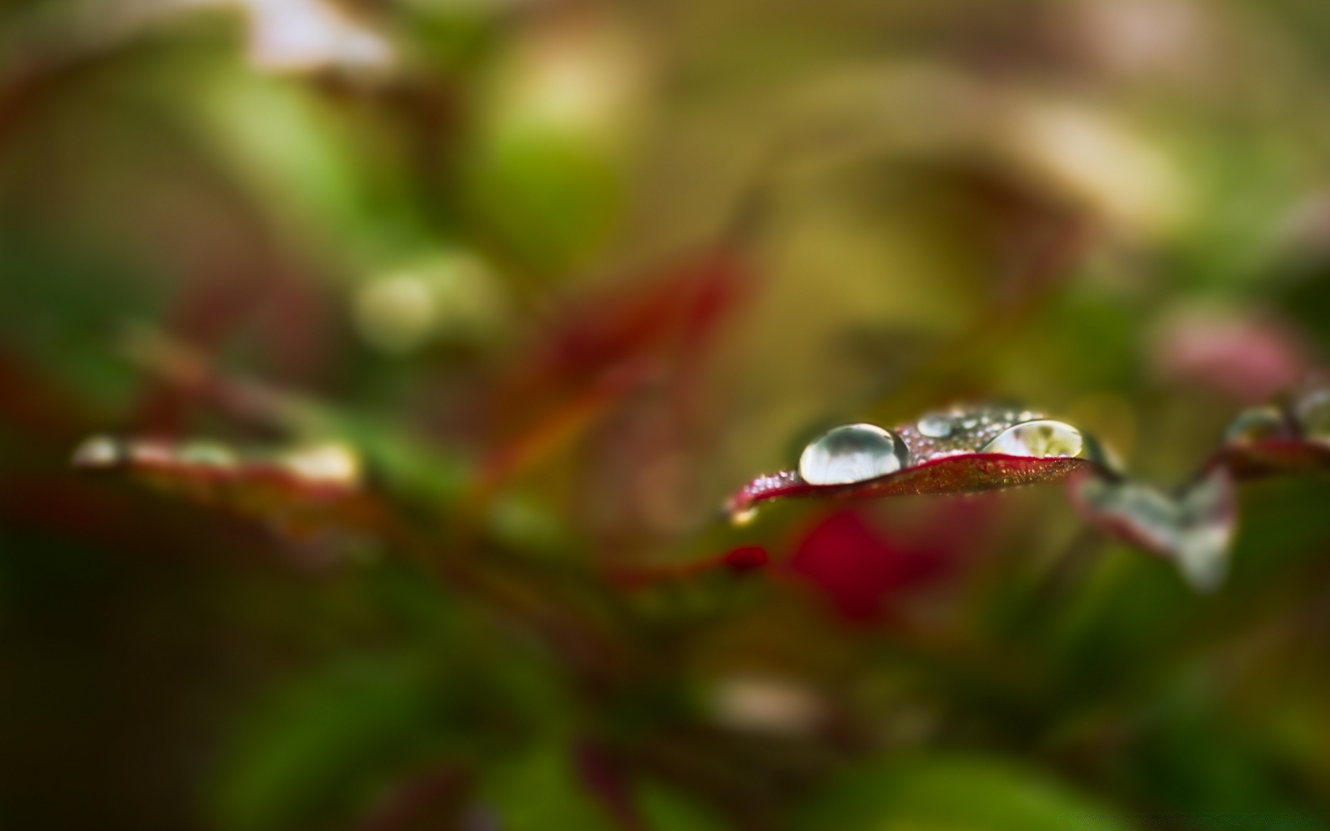 Goccioline di acqua su sfondo verde con i raggi del sole