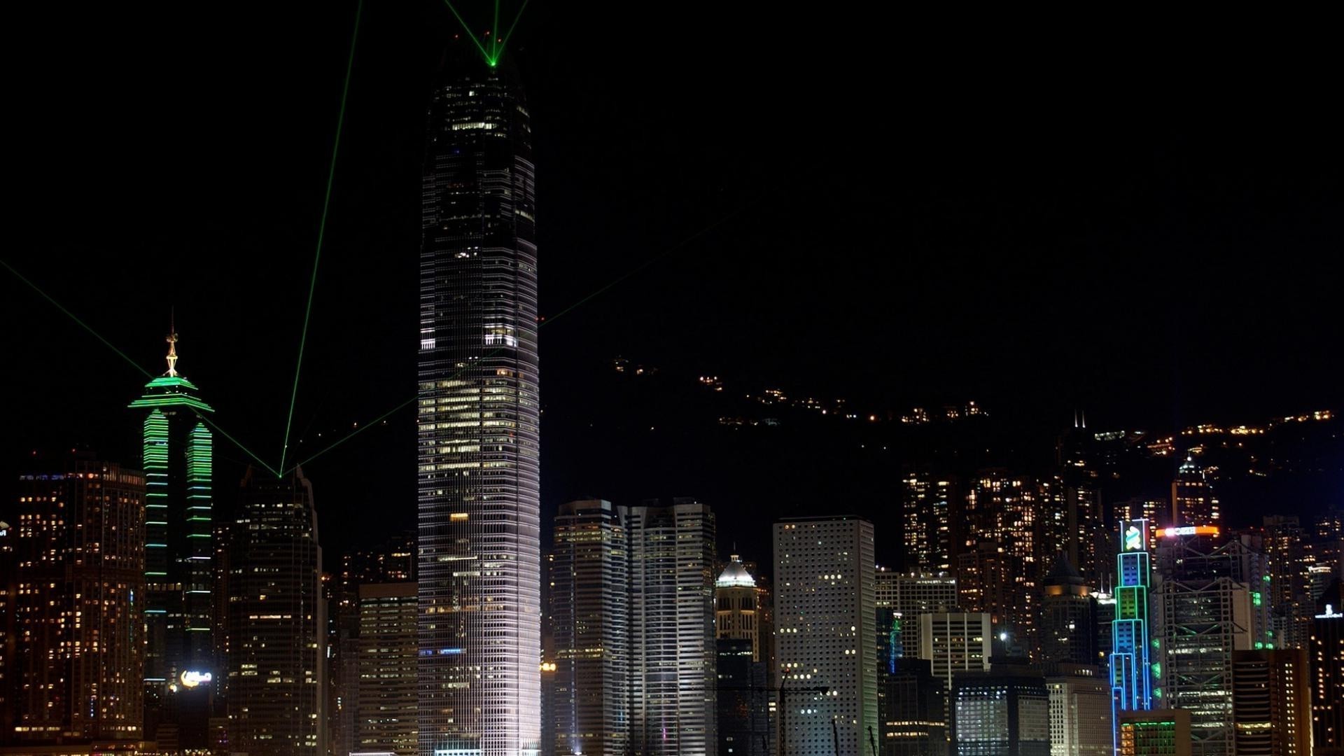 La bellezza dei grattacieli della città notturna