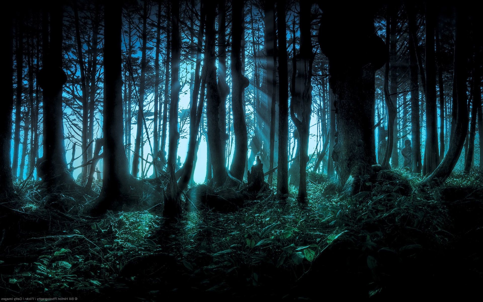 Mentre singhiozzando la luce attraverso la foresta oscura