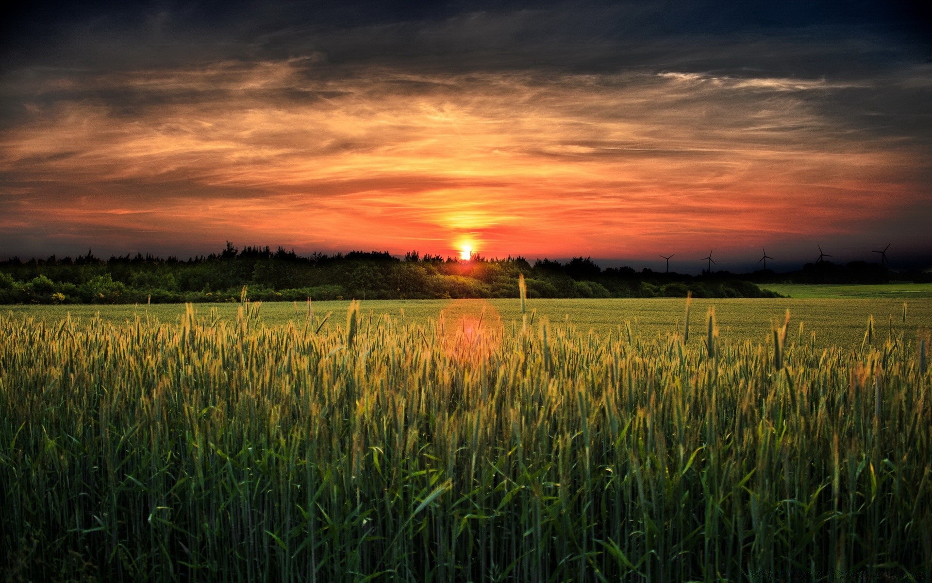 Campo colosistoe sullo sfondo della foresta e del cielo blu
