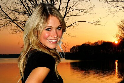 Ragazza sorridente sullo sfondo del fiume
