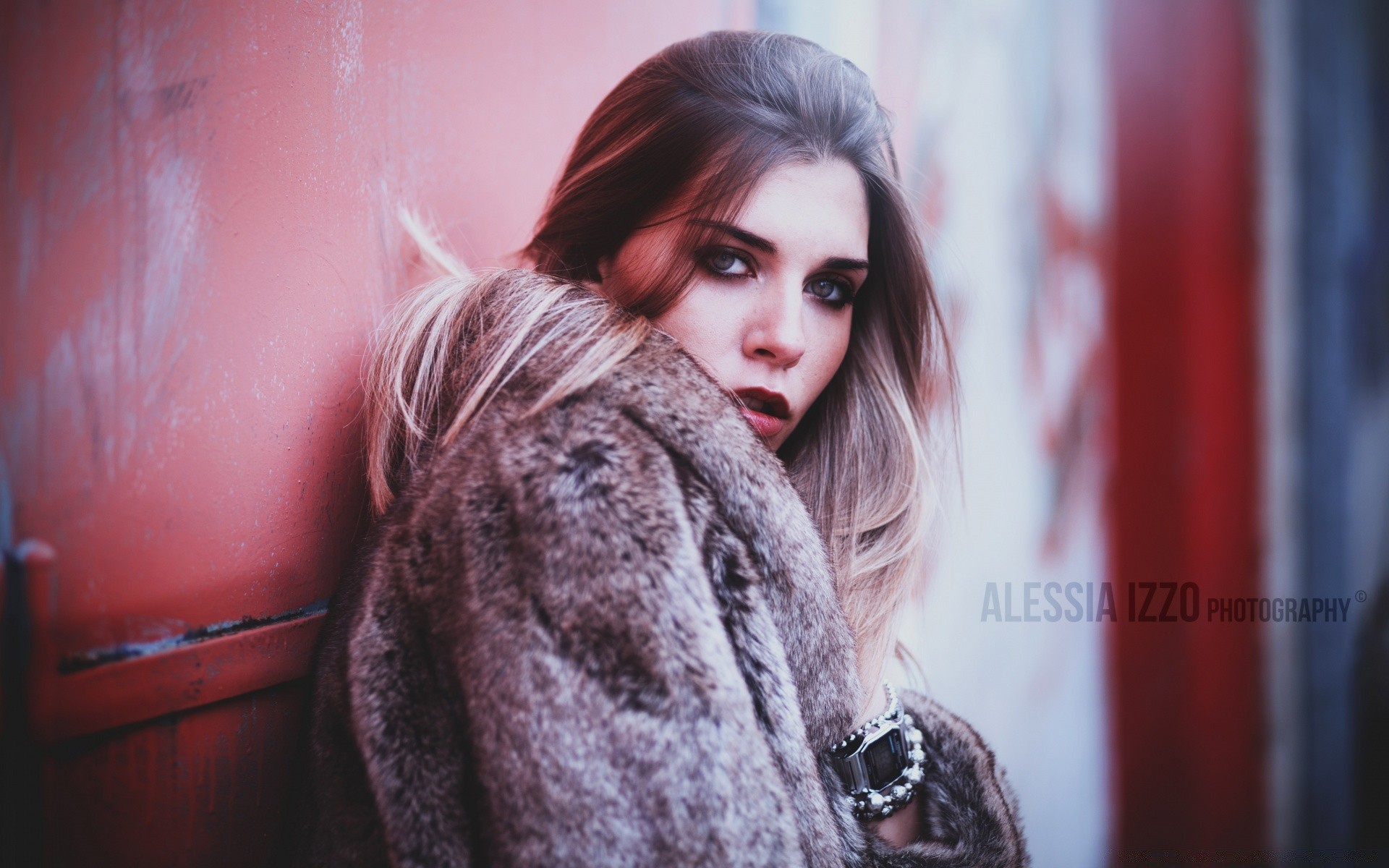 Foto di una ragazza con gli occhi belli su sfondo scuro