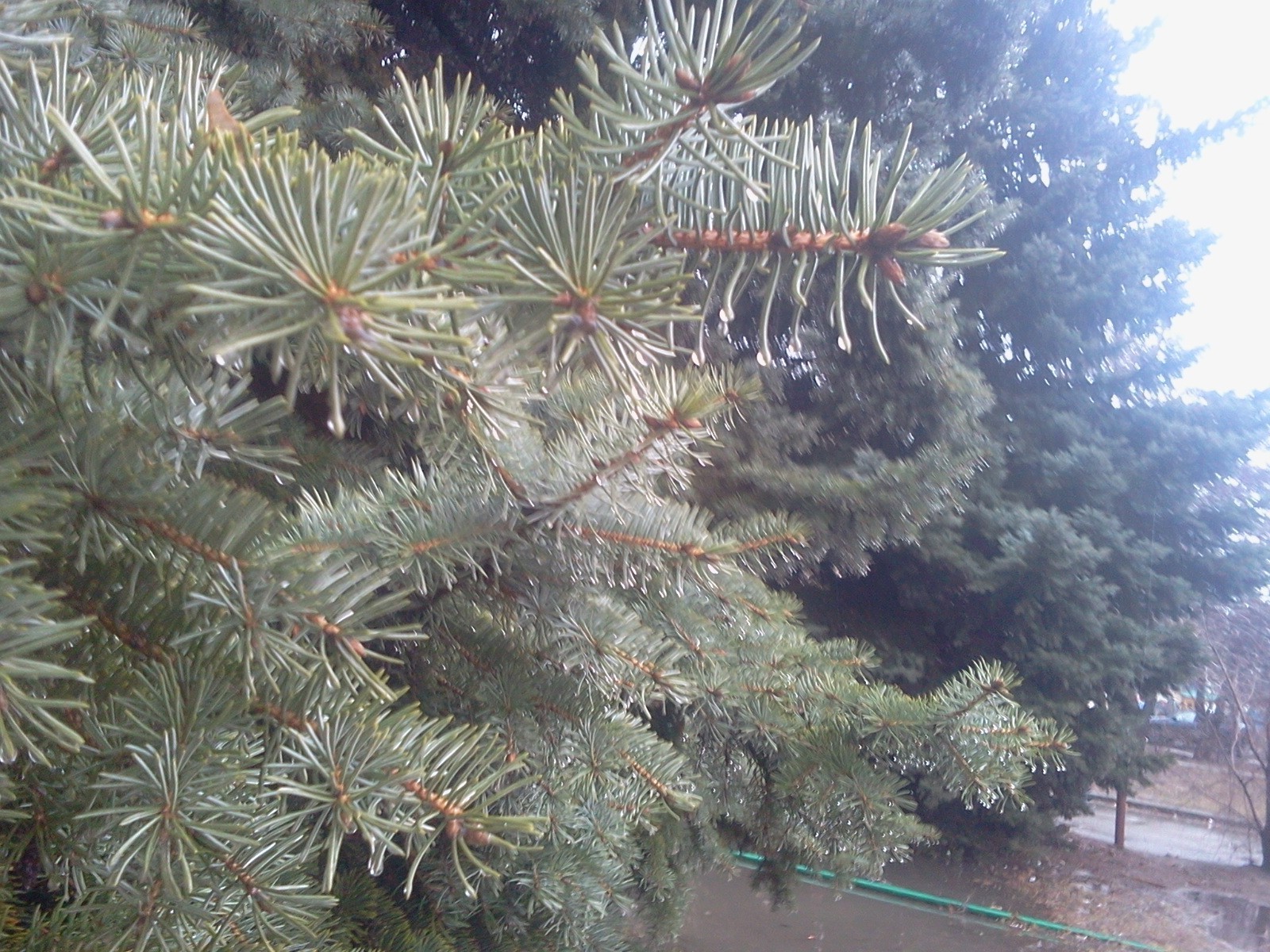 Attraverso i rami spogli degli alberi si vede il tramonto
