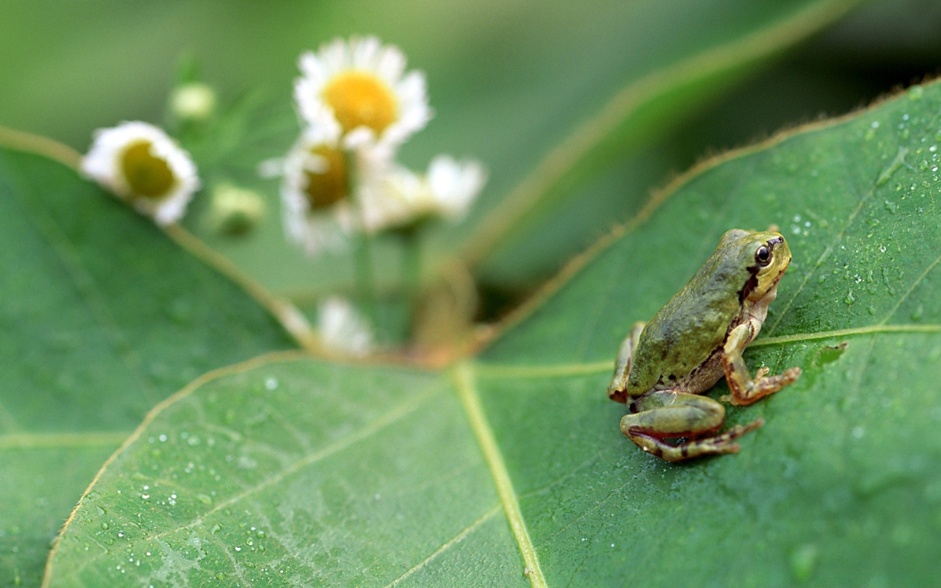 Rana strisciato fuori dalla palude seduto su un ceppo di fango
