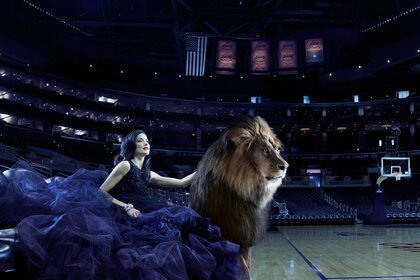 Immagine della faccia d'acciaio di un leone o di una tigre