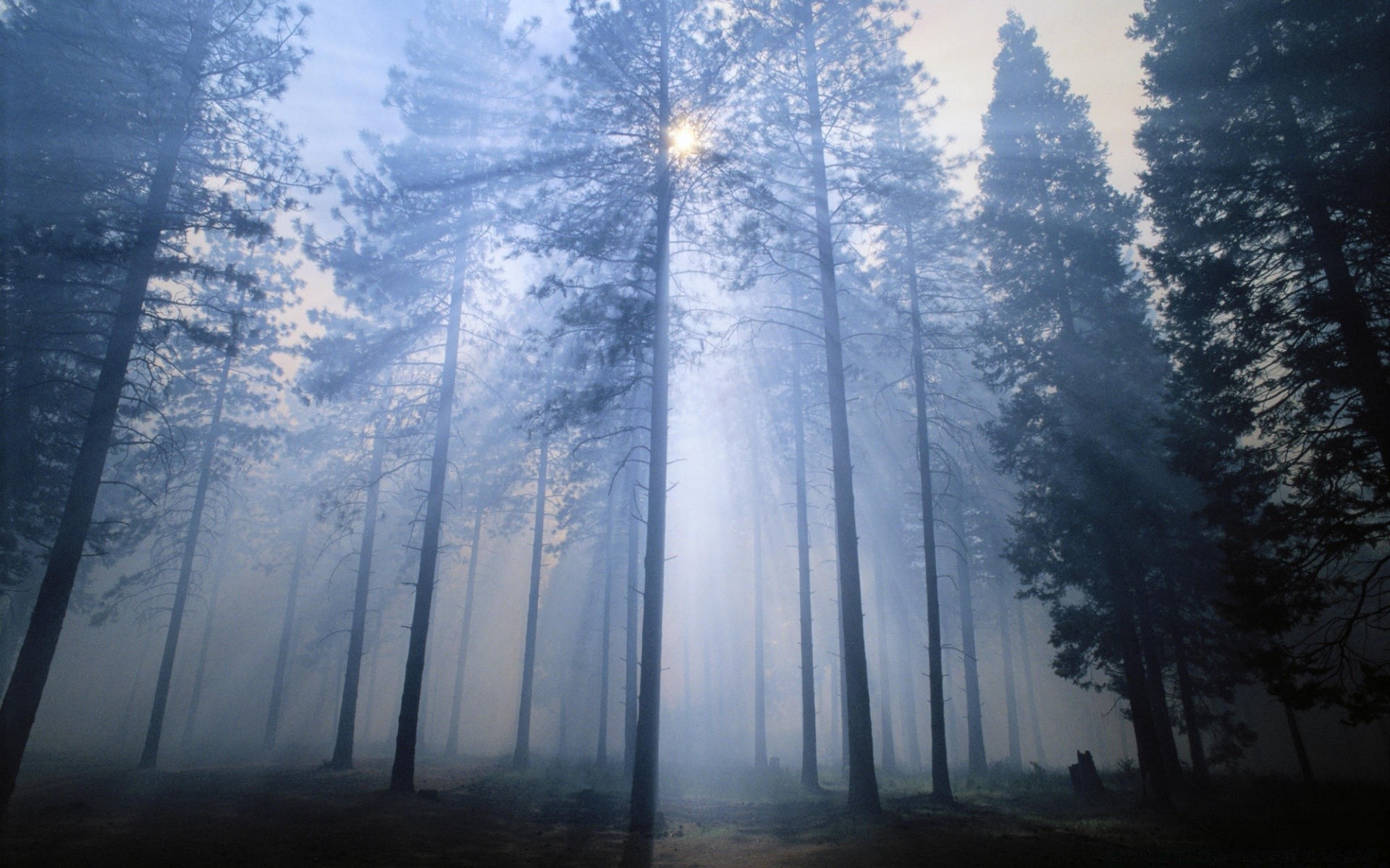 Bordo in inverno con alberi di Natale sullo sfondo delle montagne