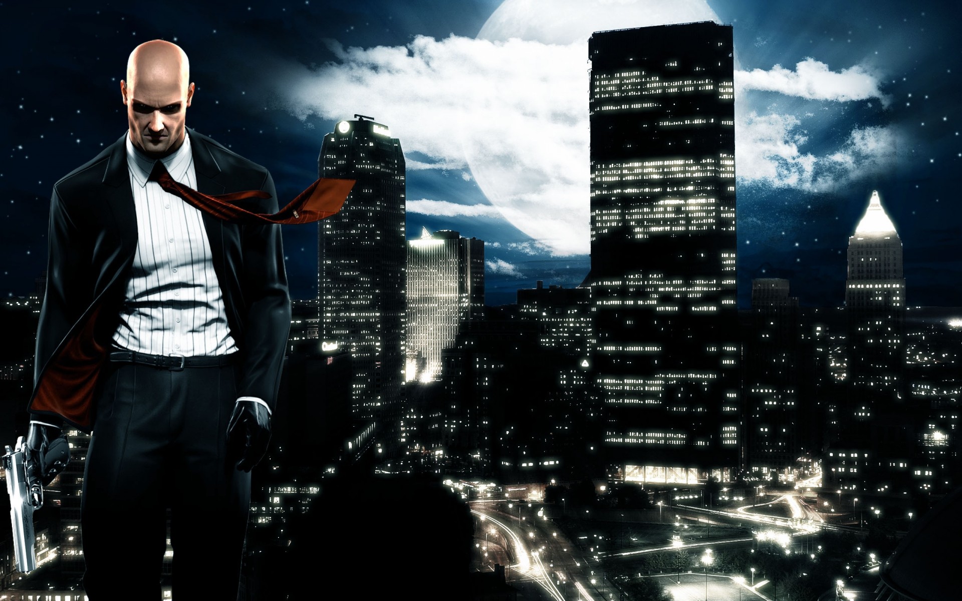 Immagine dal gioco uomo calvo sullo sfondo della città di notte