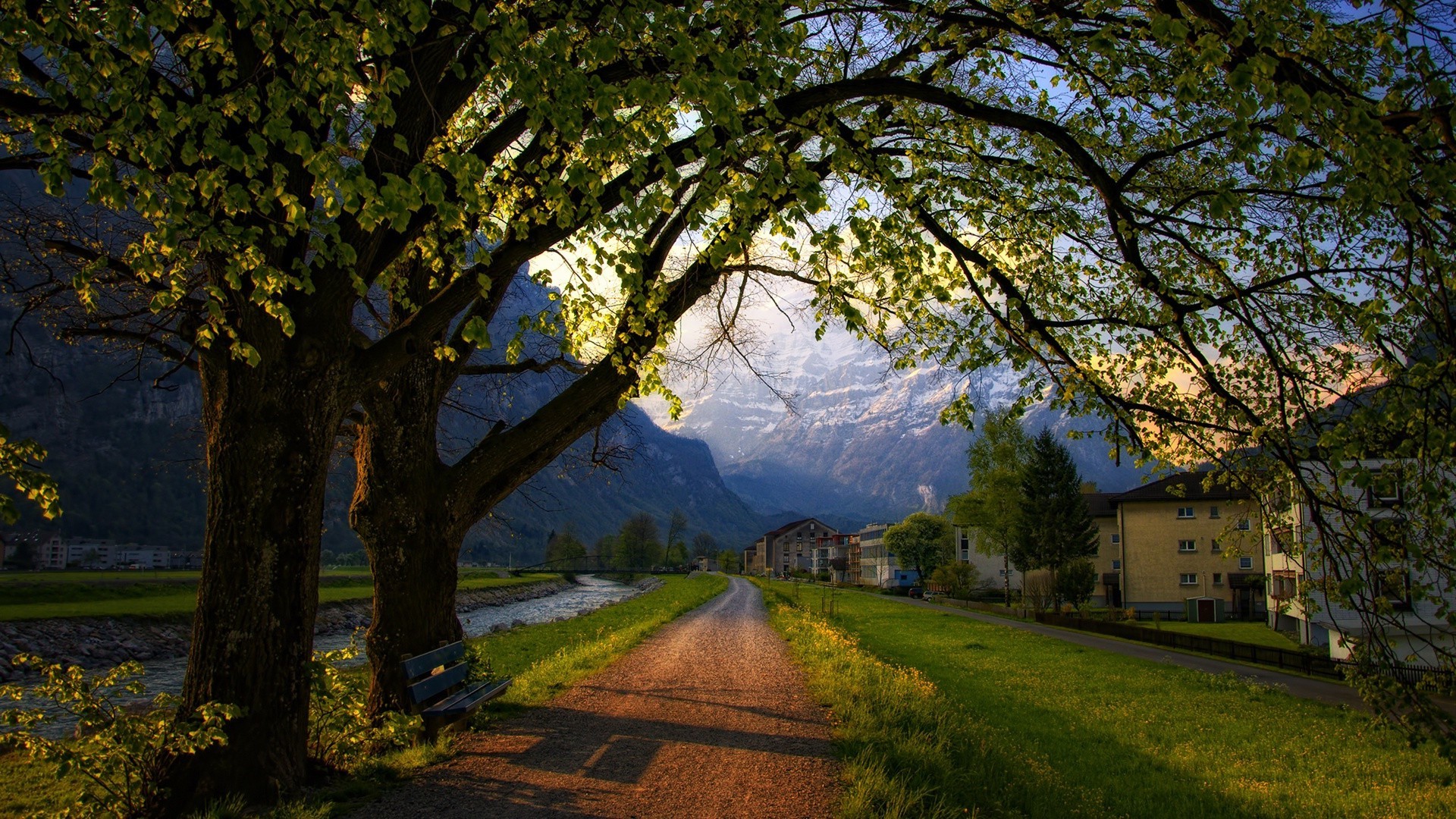 I raggi del sole si fanno strada attraverso il fitto fogliame degli alberi