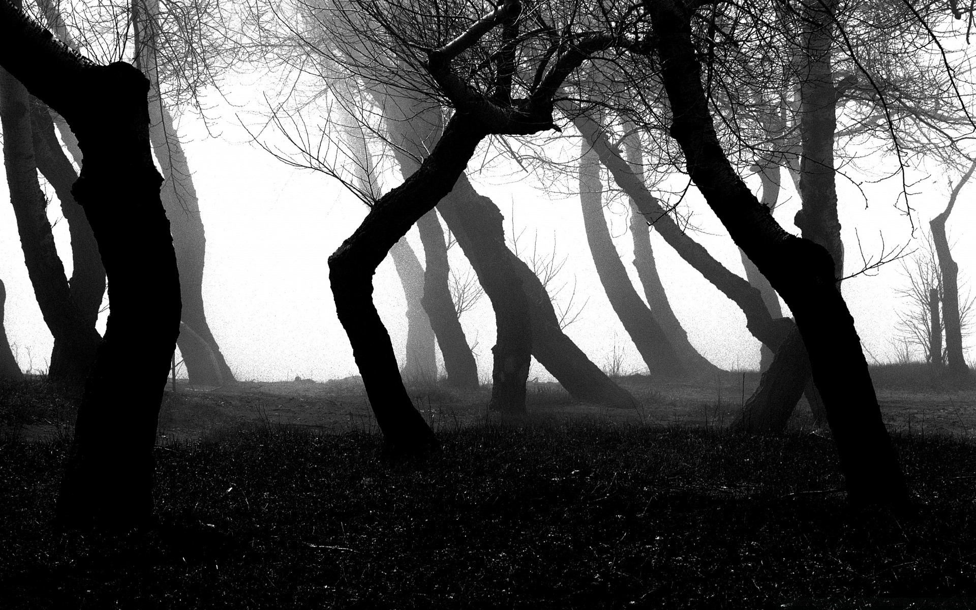 Ragazza anime in un cappello su uno sfondo di alberi in fiore