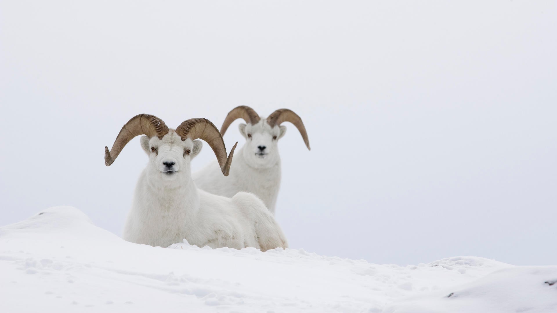 Coppia di pecore di montagna sulla neve