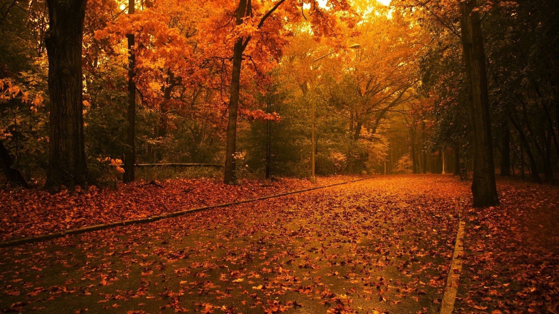 Il sentiero va tra gli alberi nella foresta d'autunnoIl sentiero va tra gli alberi nella foresta d'autunno