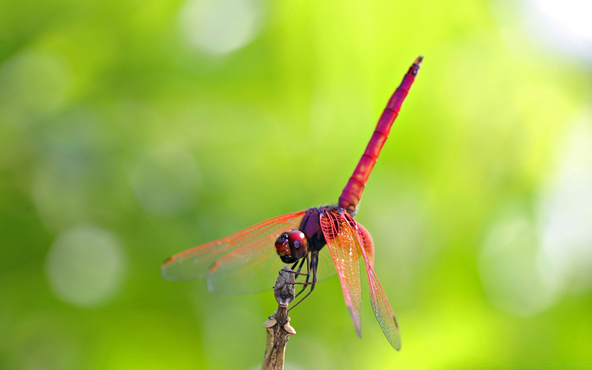 Piccola libellula sul gambo verde