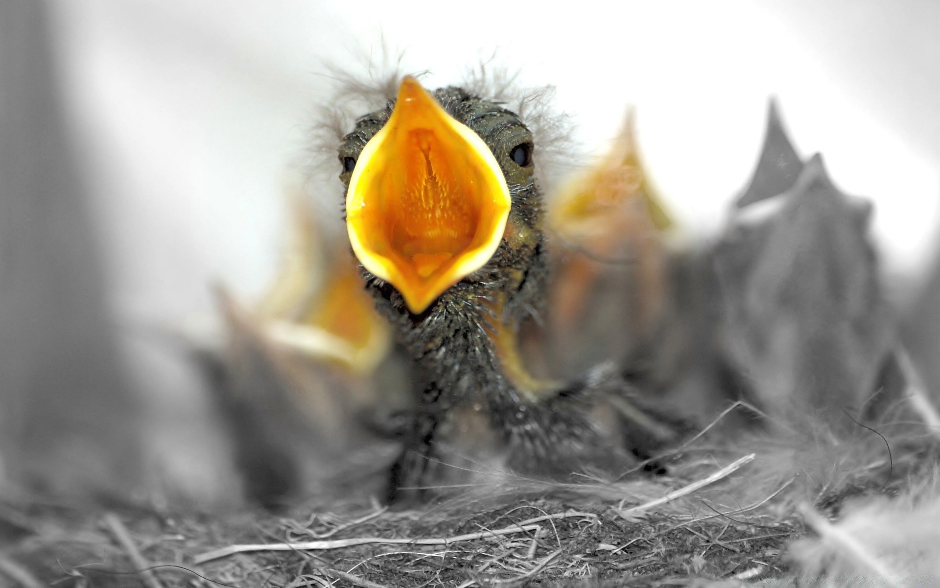 Pulcino dalla testa gialla che urla nel nido