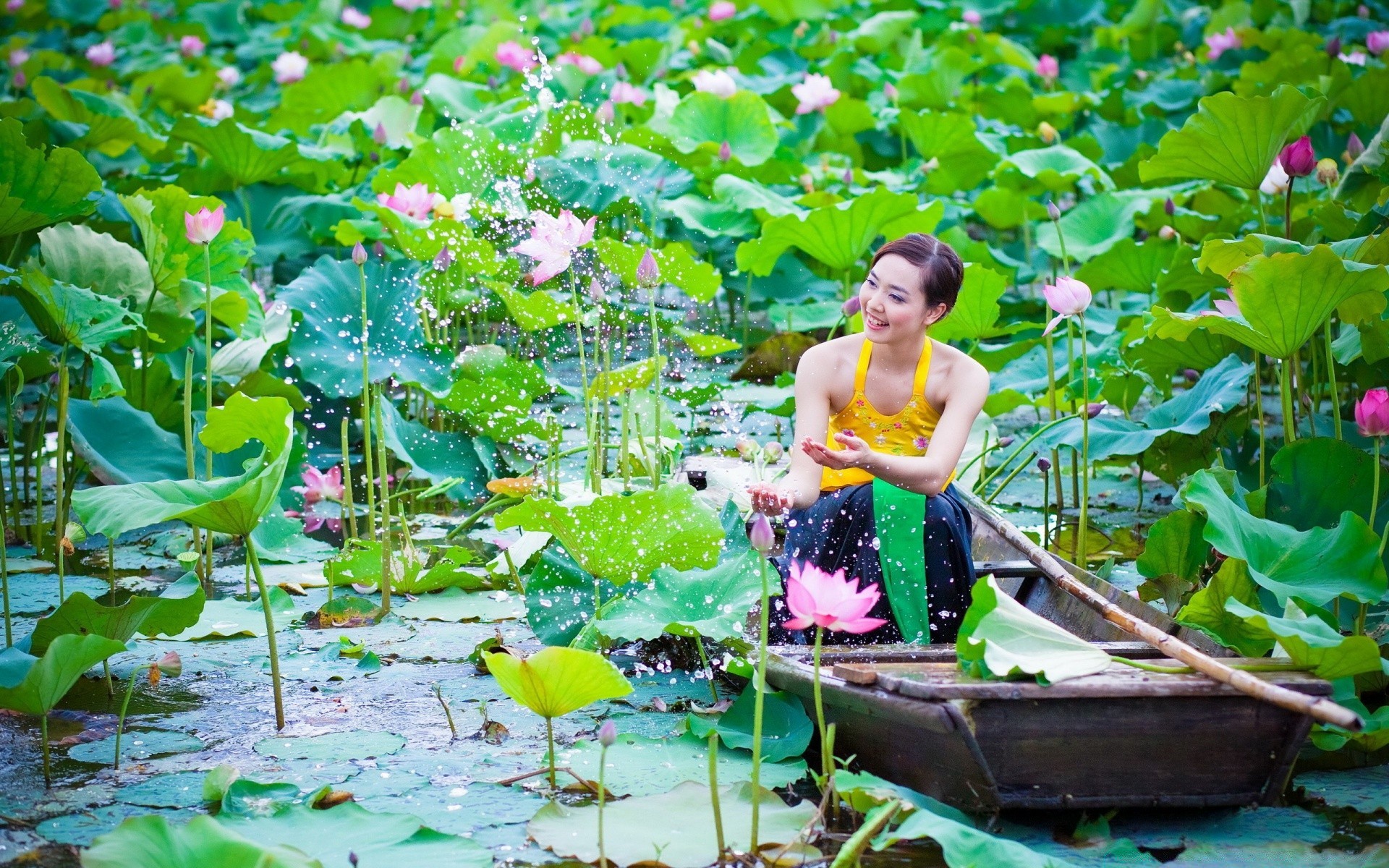 Ragazza sorridente si trova sull'erba e tiene in mano caramelle