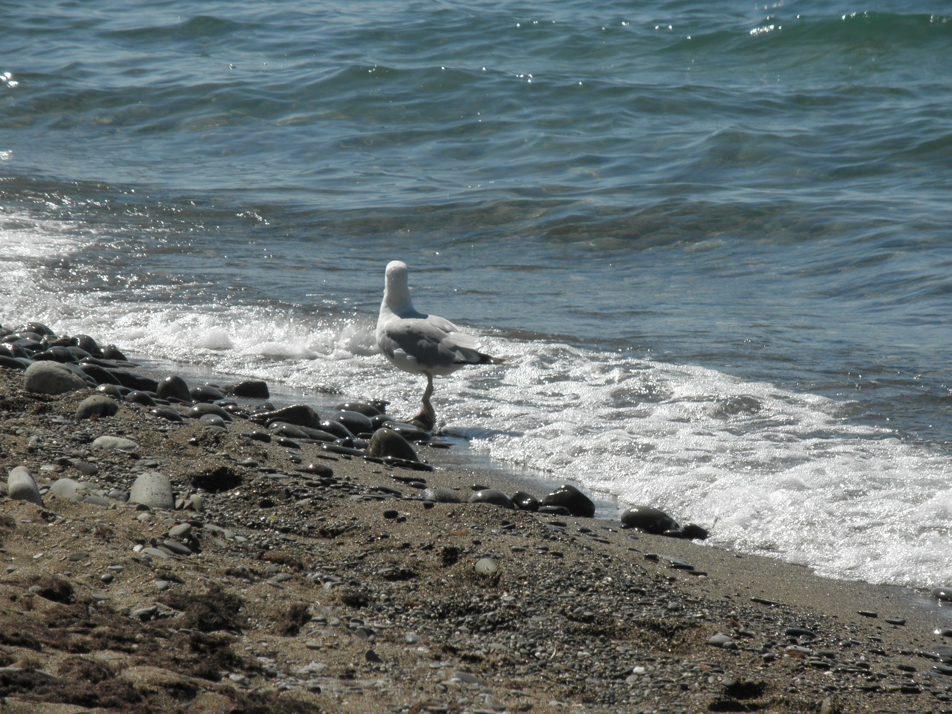 Coppia innamorata in riva al mare sullo sfondo del tramonto