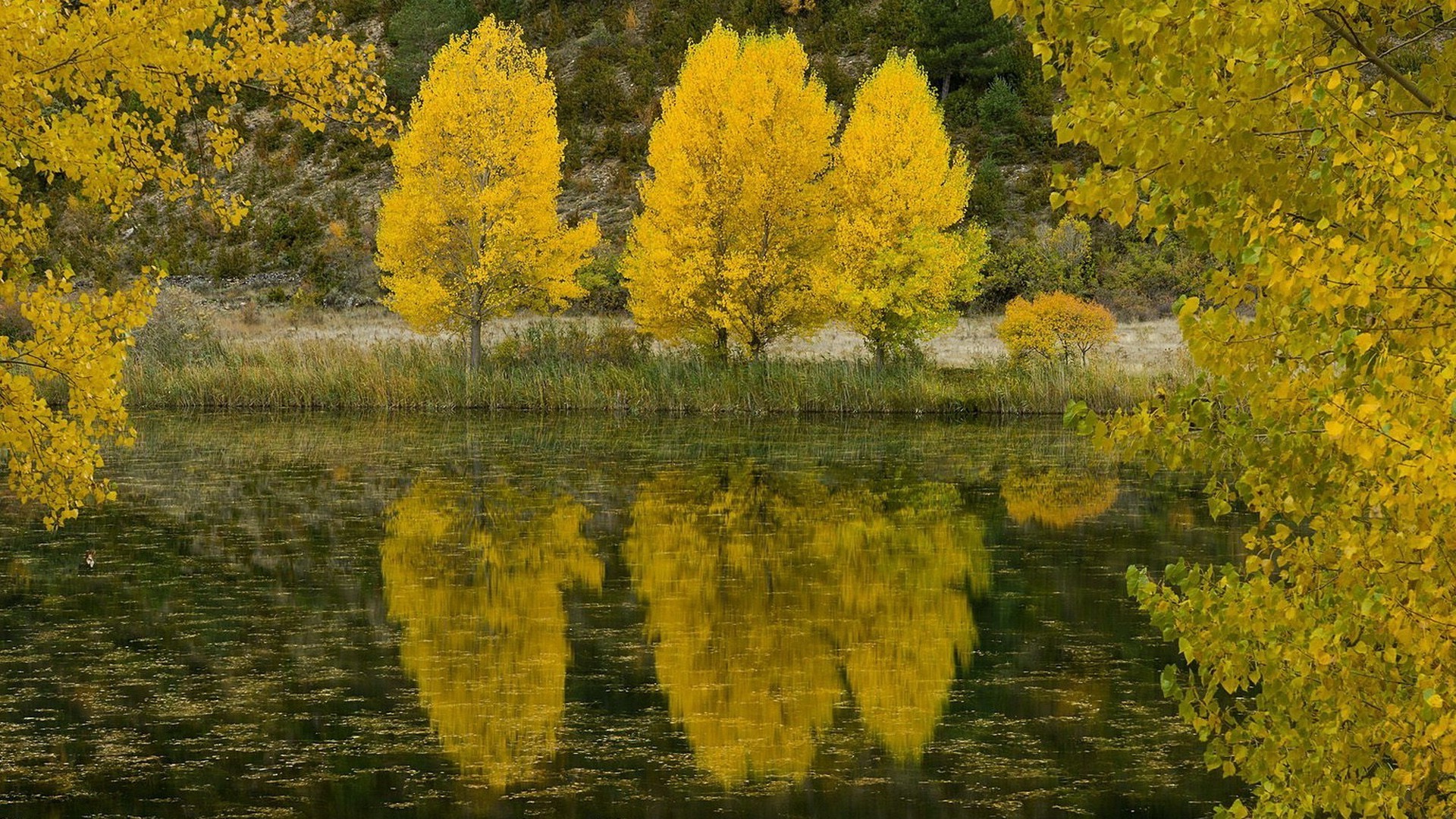 Luminoso paesaggio autunnale sulla riva del serbatoio