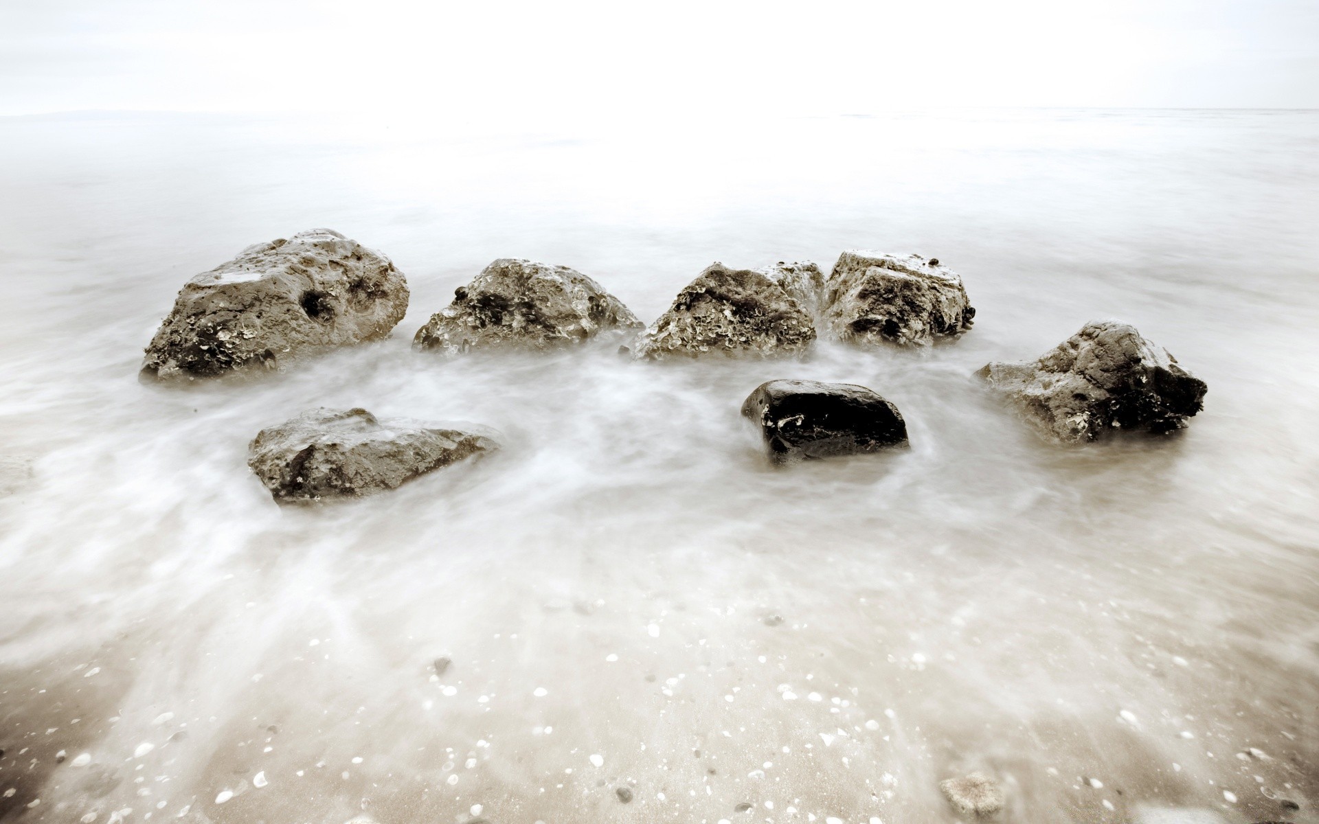 Le onde del mare si infrangono sulle rocce con molti spruzzi
