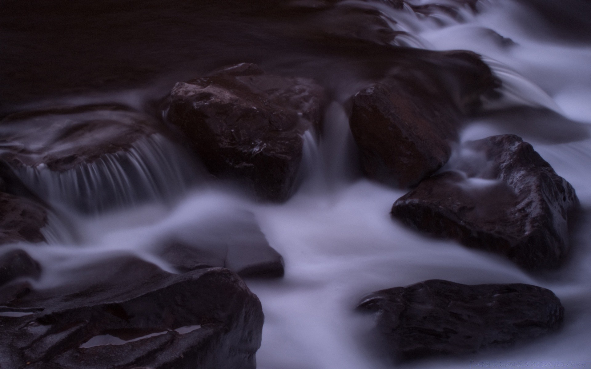 Piccola cascata tra rocce e foglie di alberi giallo-verdi nella foresta autunnale