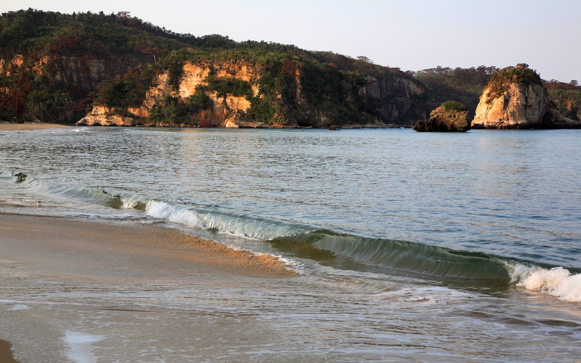 Mare annebbiato oceano rocce rocce cielo orizzonte