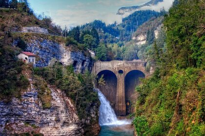Bellissimo paesaggio di montagna con cascata